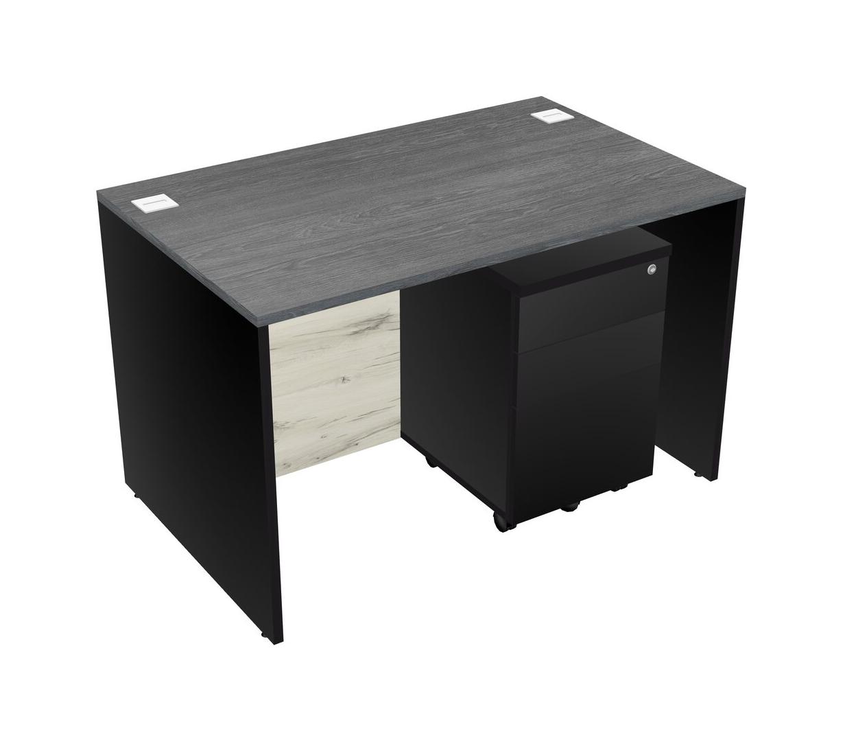 Grey Rectangular Office Desk Plus Black Wooden Mobile Drawers