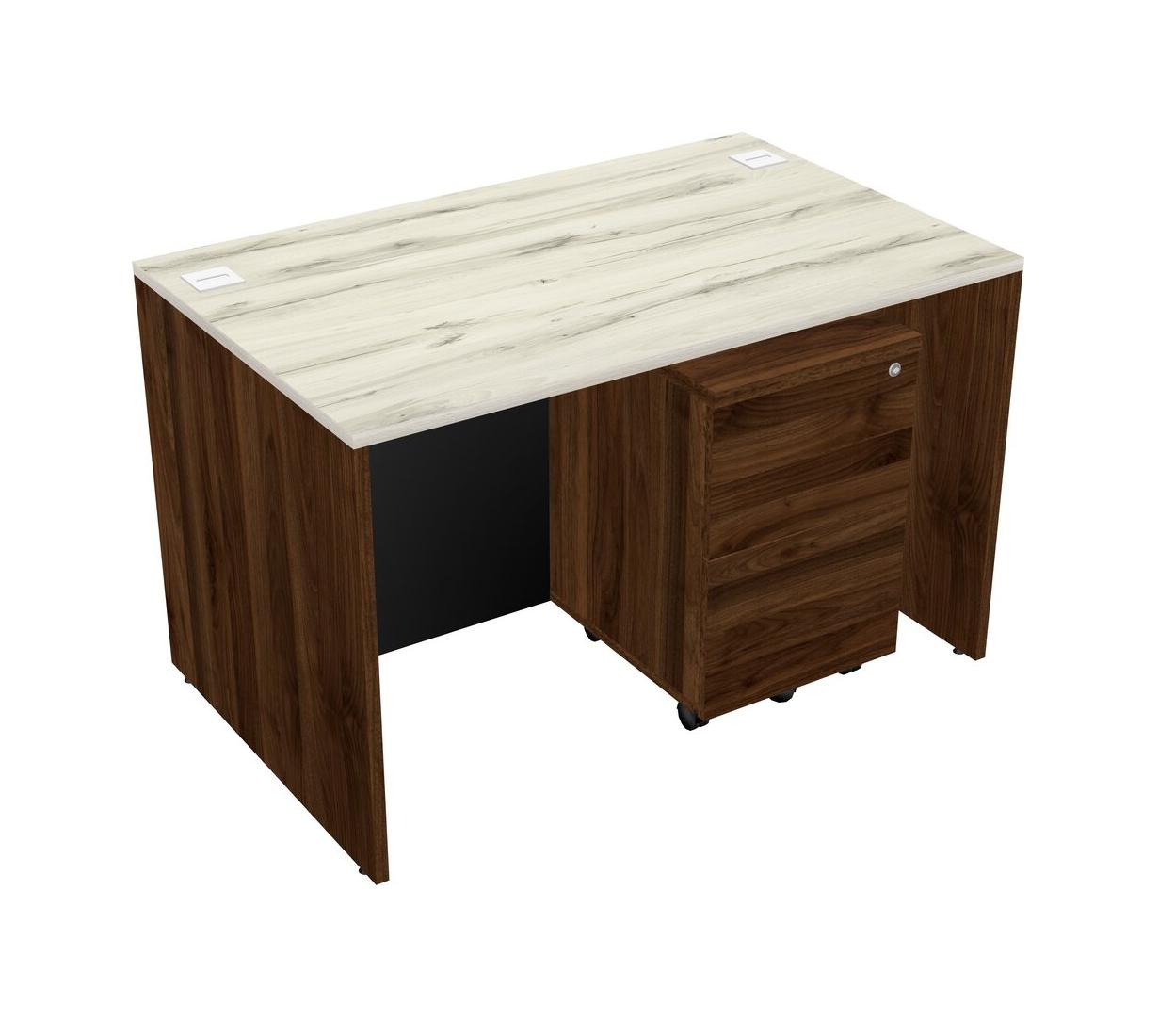 Heinne Holz Rectangular Office Desk Plus Columbia Walnut Wooden Mobile Drawers