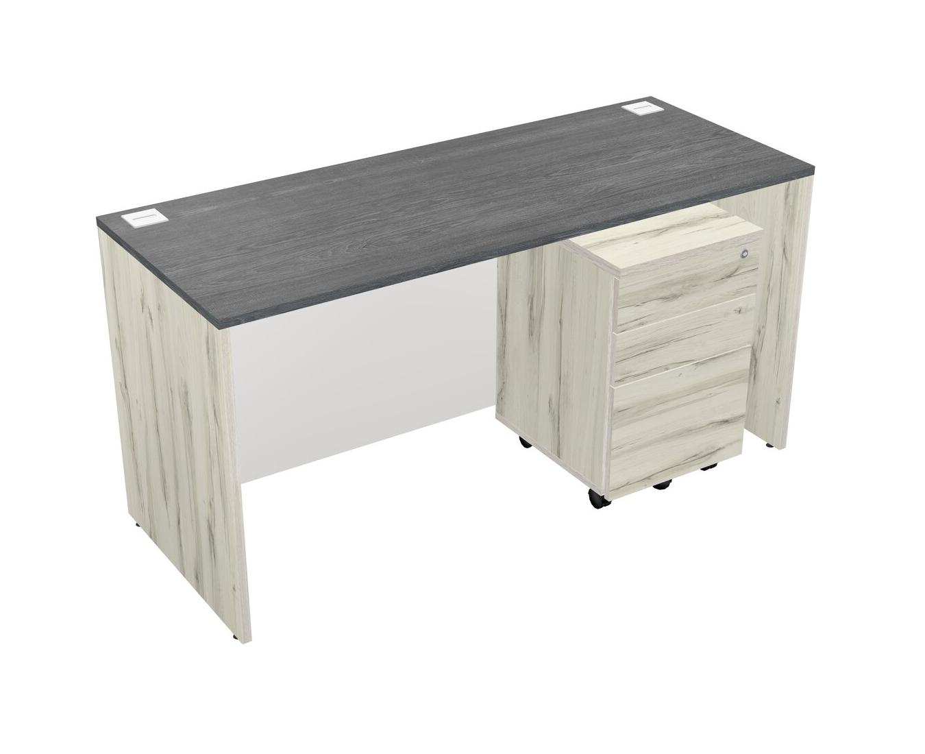 Grey Rectangular Office Desk Plus Heinne Holz Wooden Mobile Drawers
