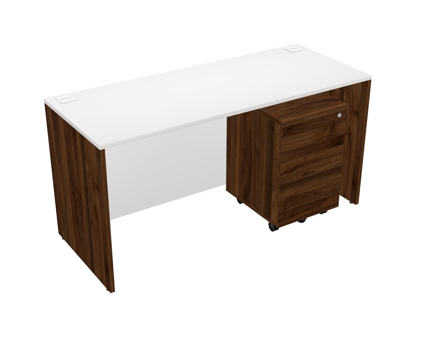 White Rectangular Office Desk Plus Columbia Walnut Wooden Mobile Drawers