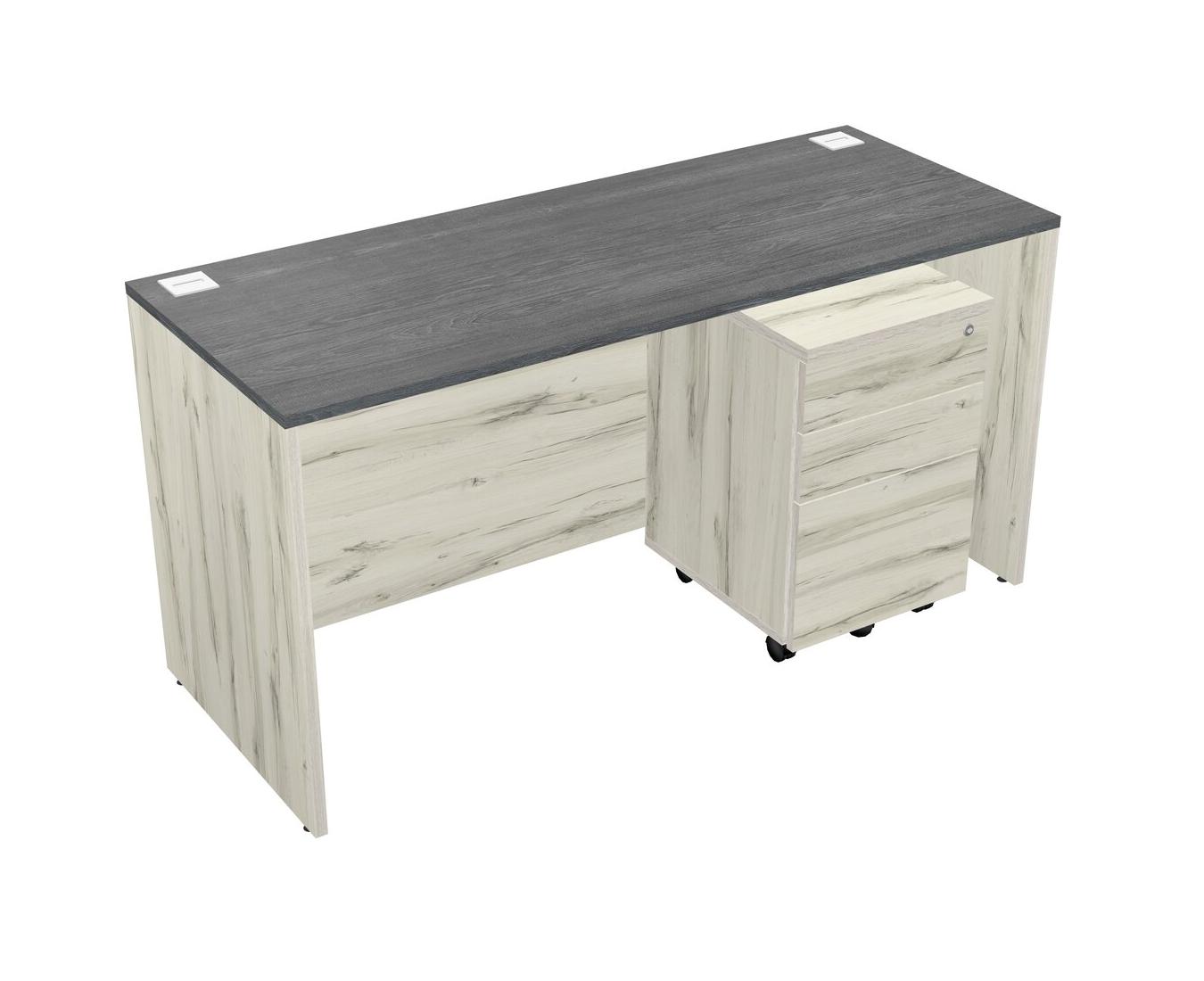 Grey Rectangular Office Desk Plus Heinne Holz Wooden Mobile Drawers