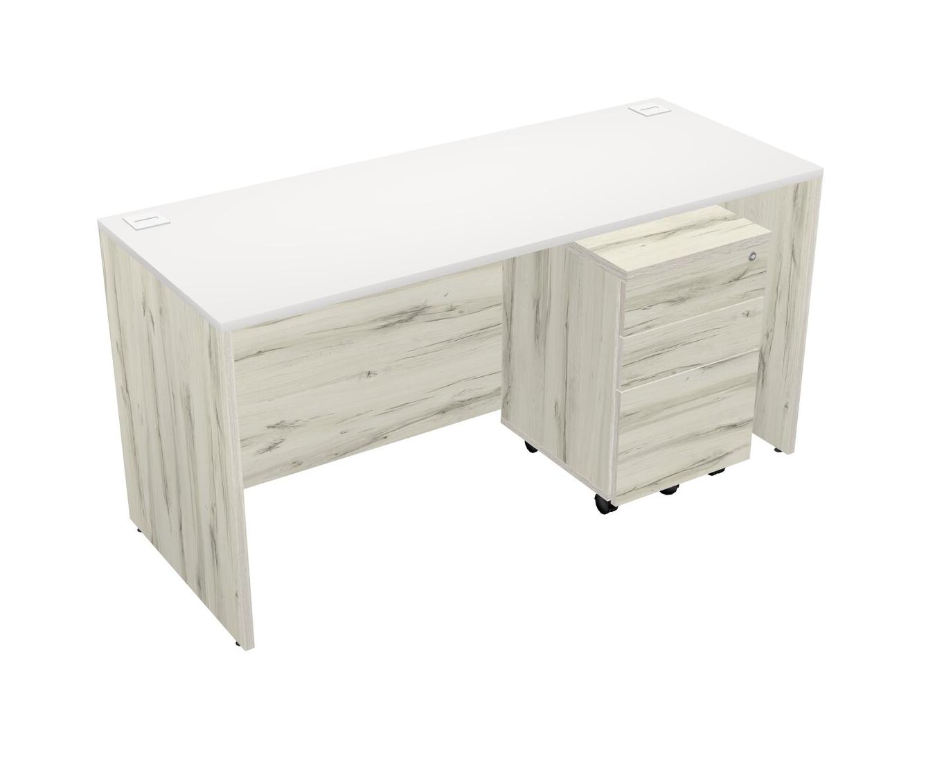 White Rectangular Office Desk Plus Heinne Holz Wooden Mobile Drawers