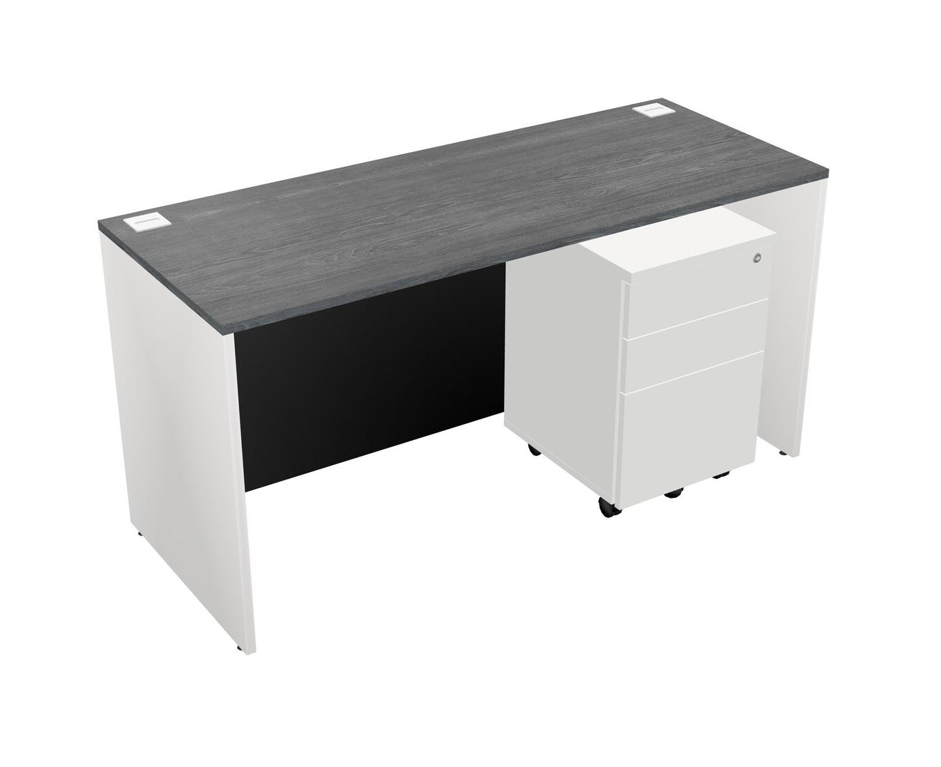 Grey Rectangular Office Desk Plus White Wooden Mobile Drawers