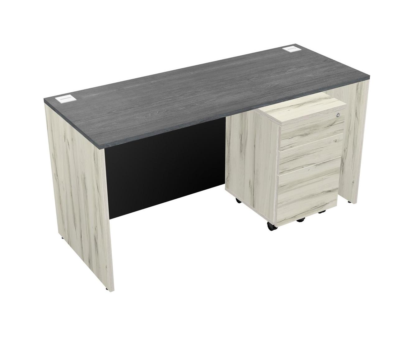 Grey Rectangular Office Desk Plus Heinne Holz Wooden Mobile Drawers