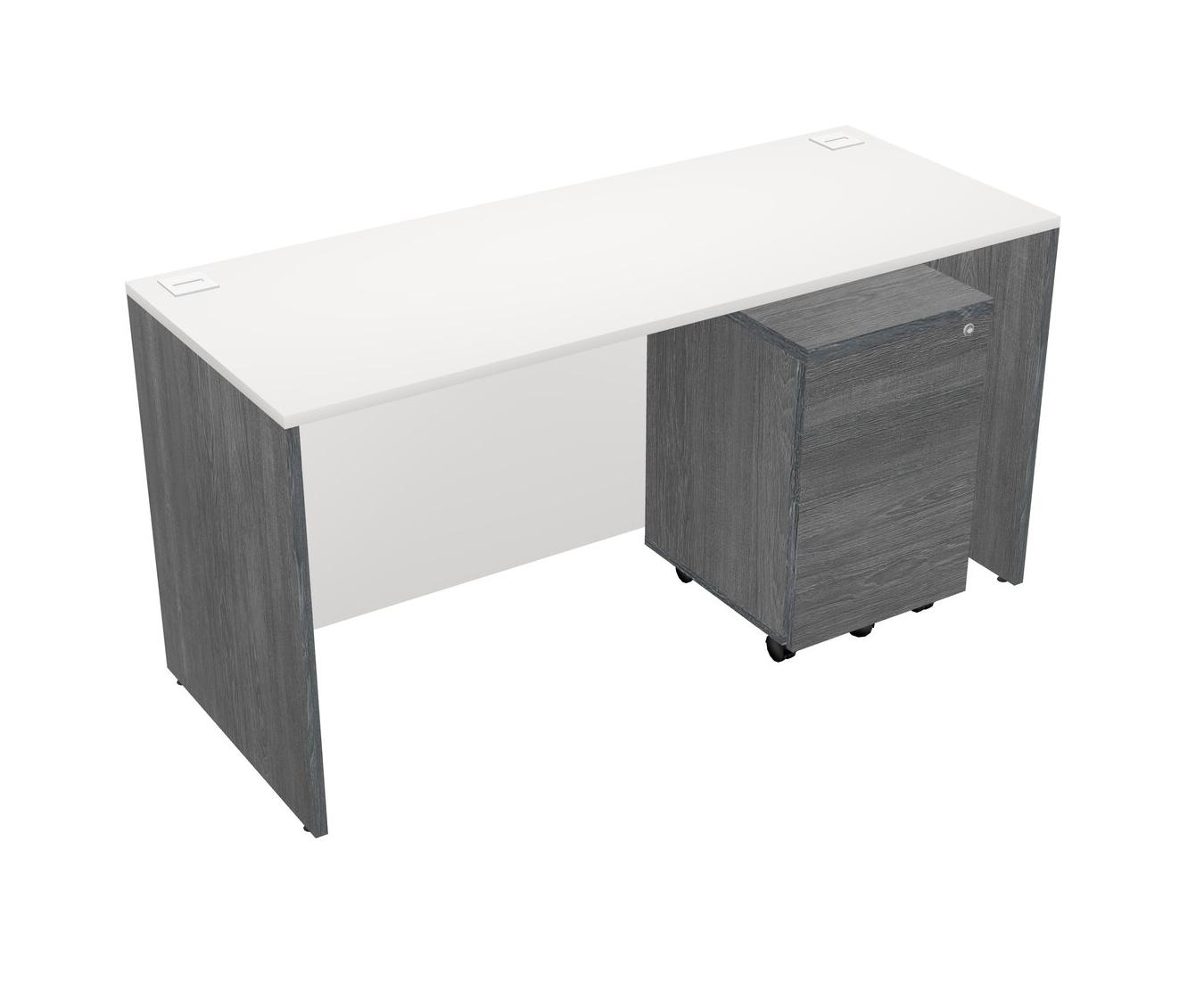 White Rectangular Office Desk Plus Grey Wooden Mobile Drawers