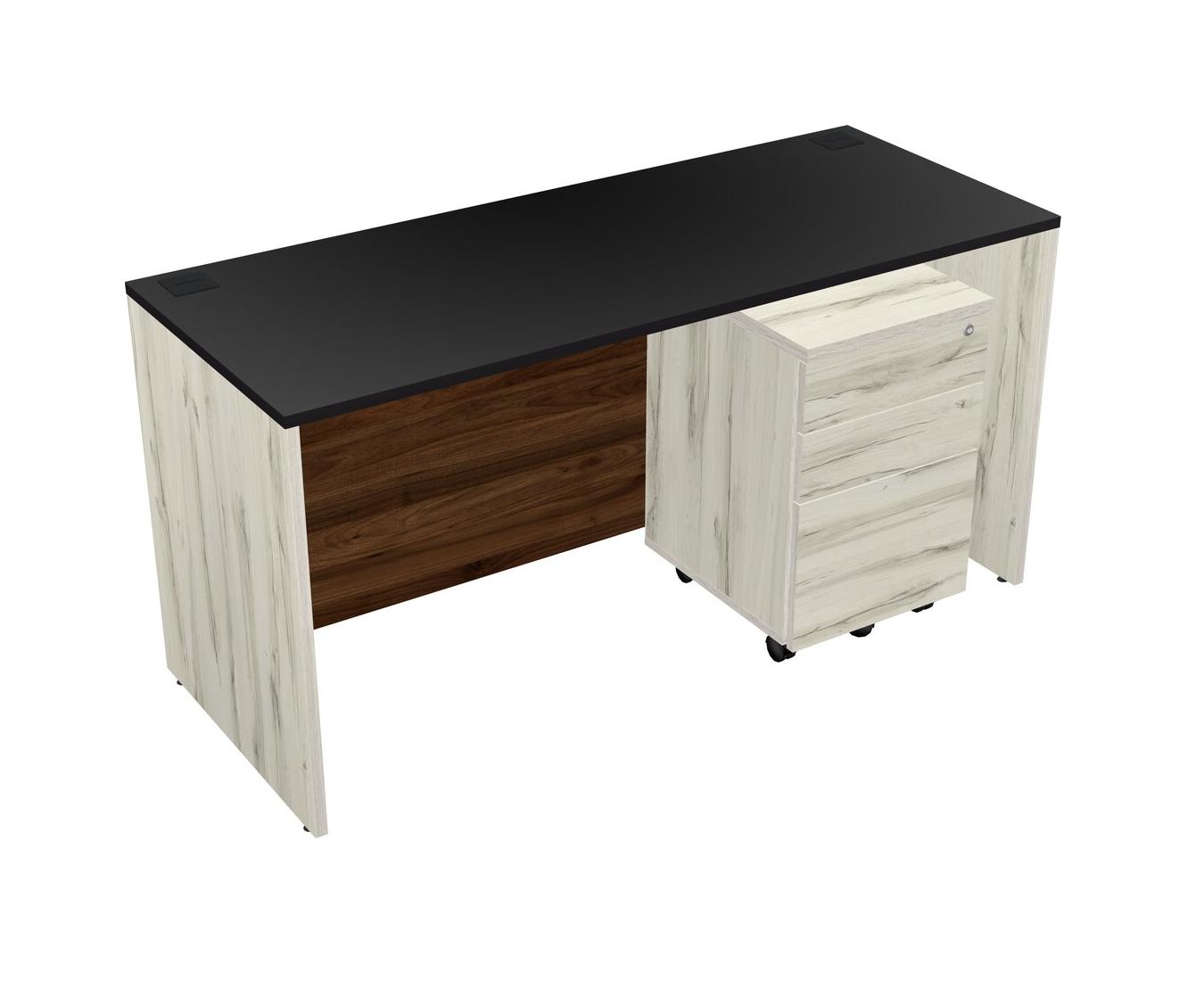 Black Rectangular Office Desk Plus Heinne Holz Wooden Mobile Drawers