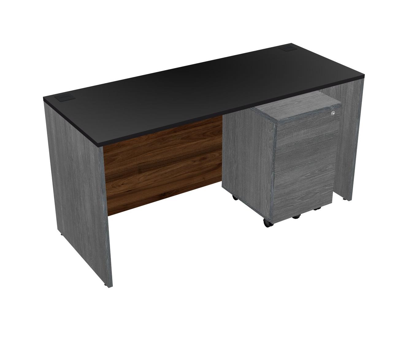 Black Rectangular Office Desk Plus Grey Wooden Mobile Drawers