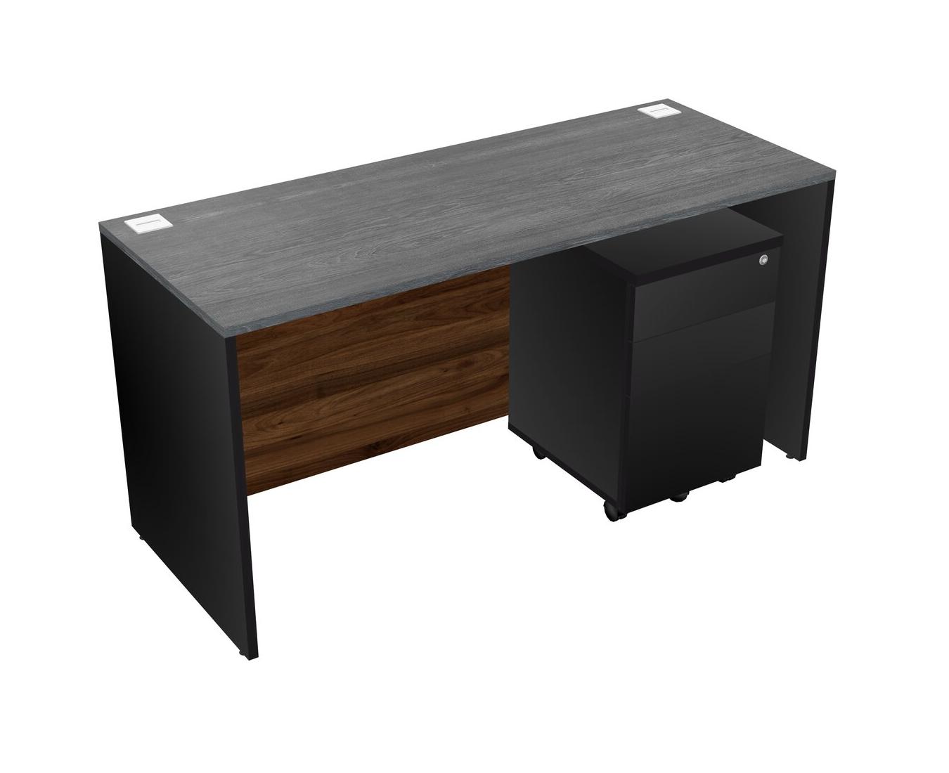 Grey Rectangular Office Desk Plus Black Wooden Mobile Drawers