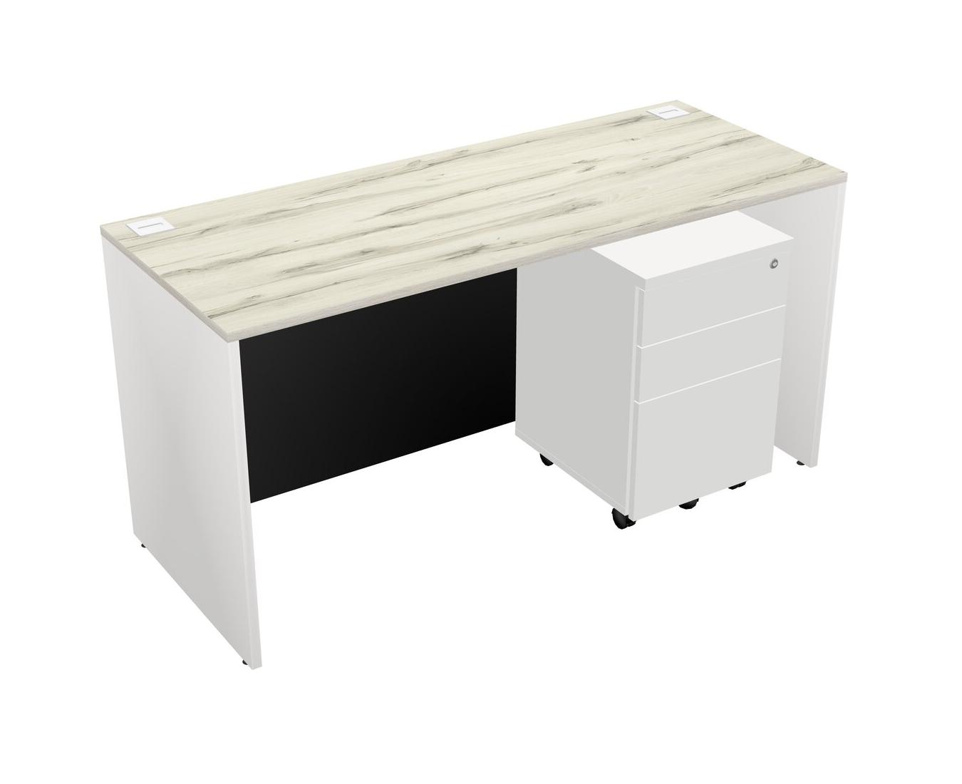 Heinne Holz Rectangular Office Desk Plus White Wooden Mobile Drawers