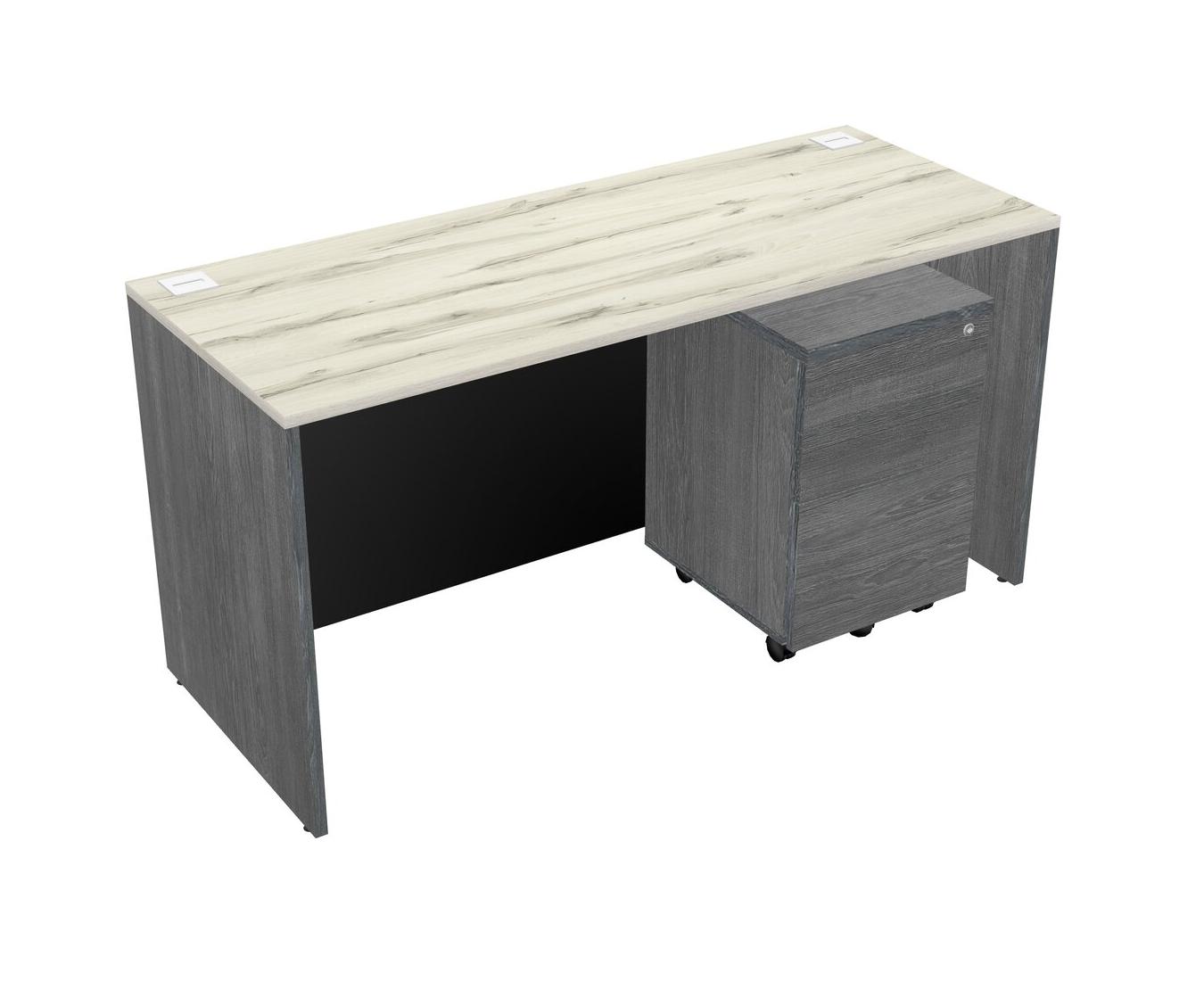 Heinne Holz Rectangular Office Desk Plus Grey Wooden Mobile Drawers