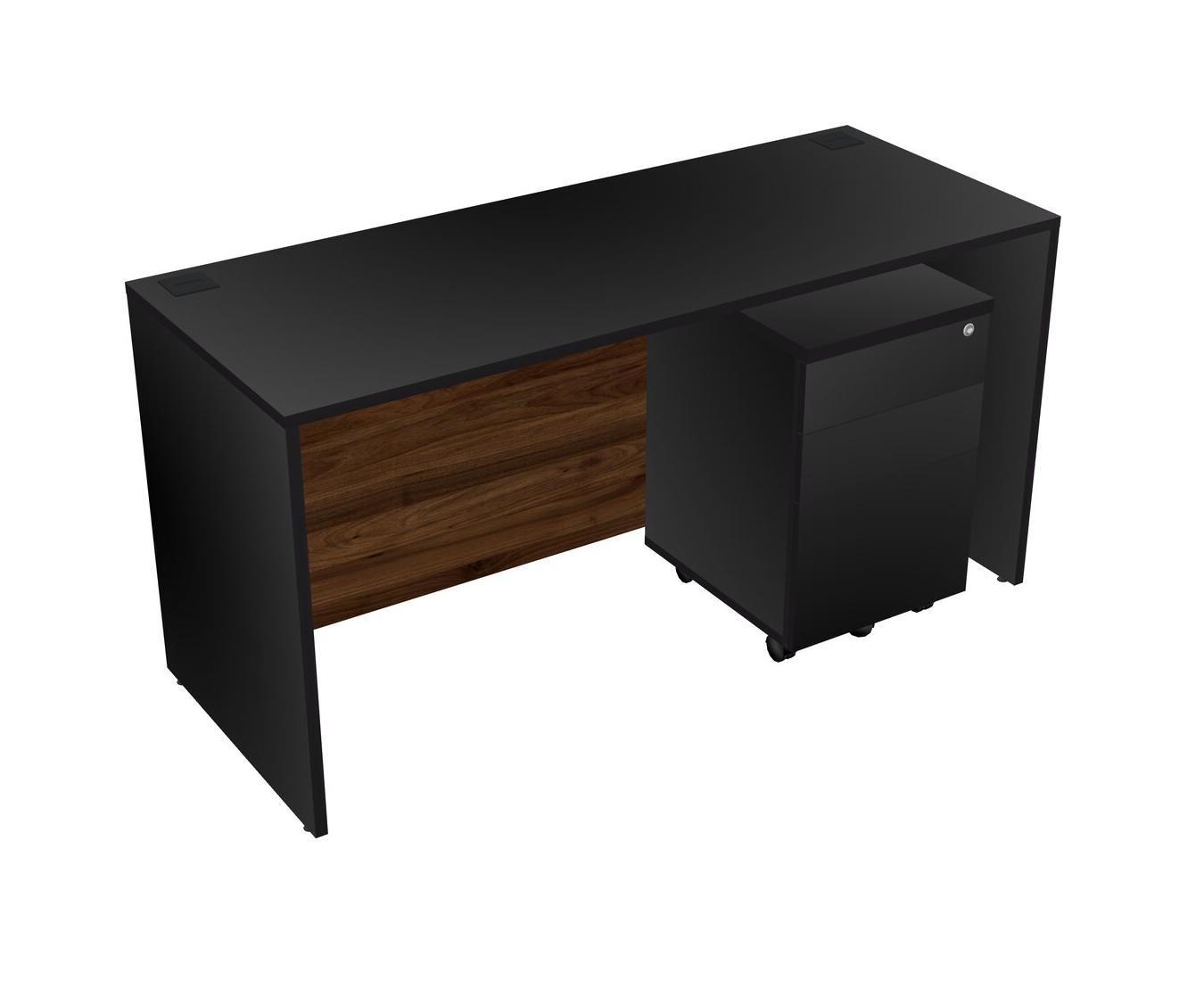 Black Rectangular Office Desk Plus Black Wooden Mobile Drawers