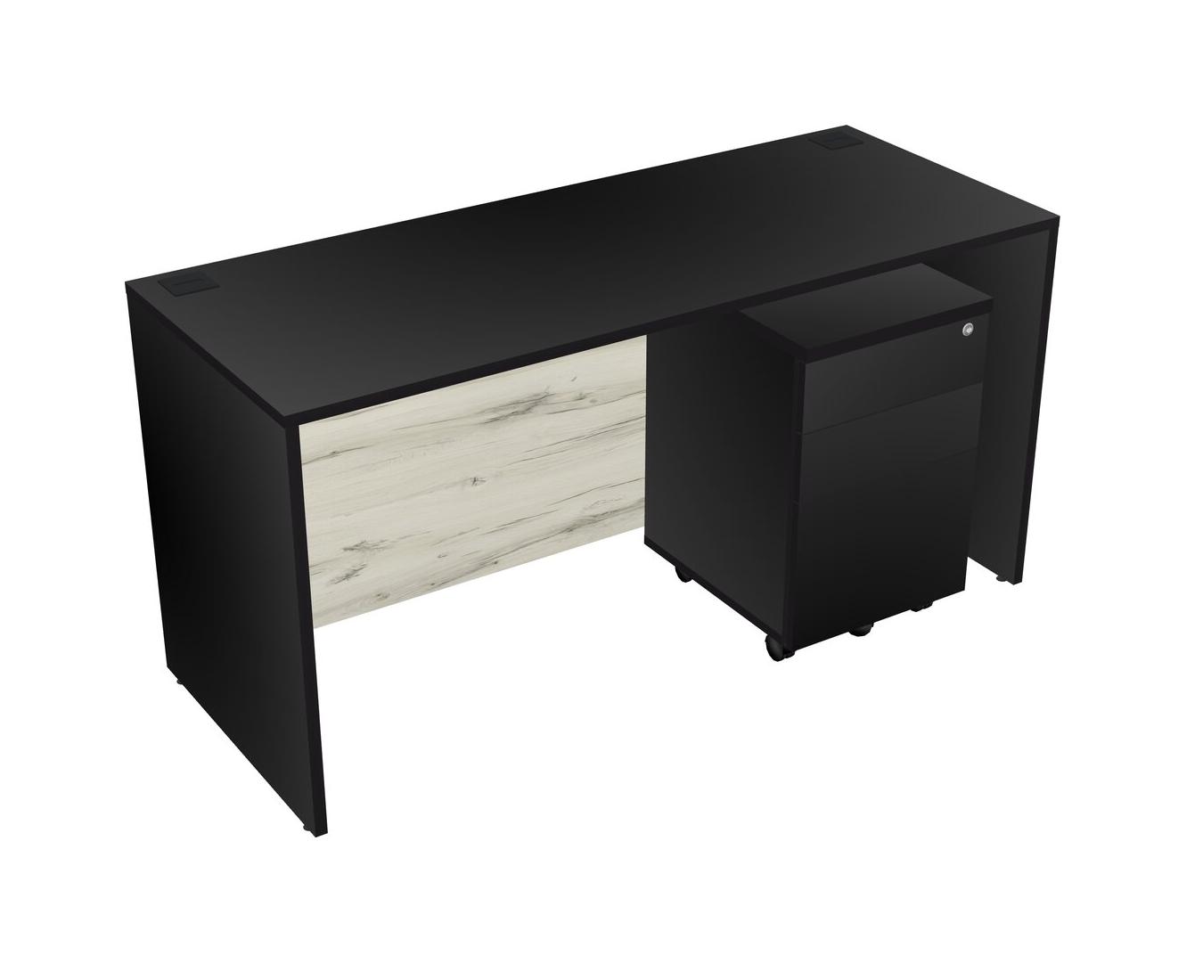 Black Rectangular Office Desk Plus Black Wooden Mobile Drawers