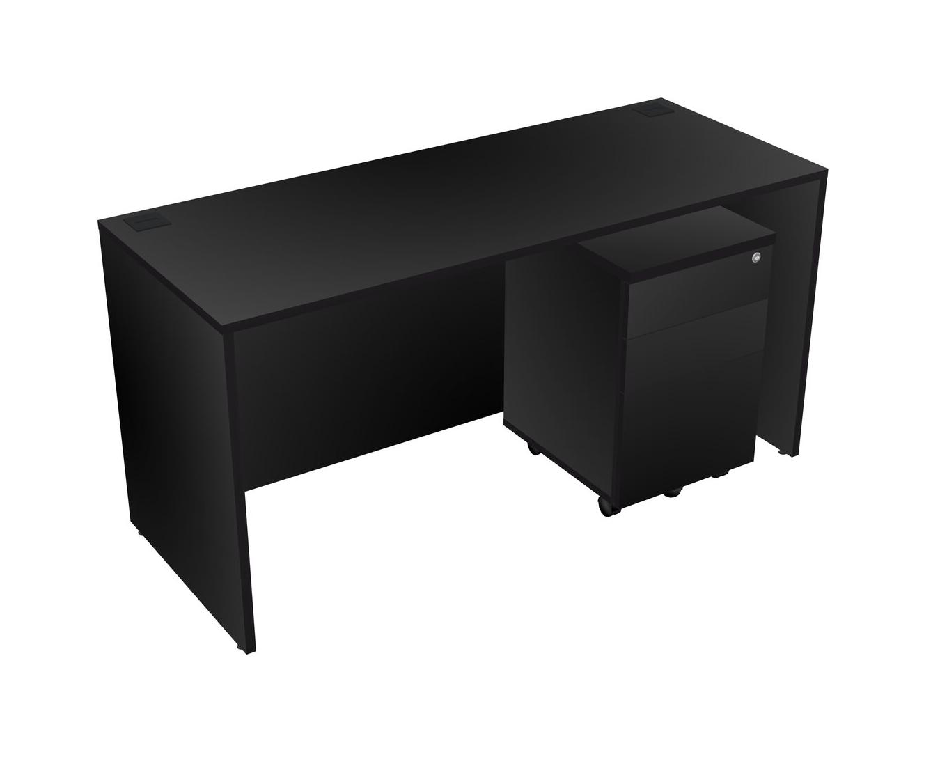 Black Rectangular Office Desk Plus Black Wooden Mobile Drawers