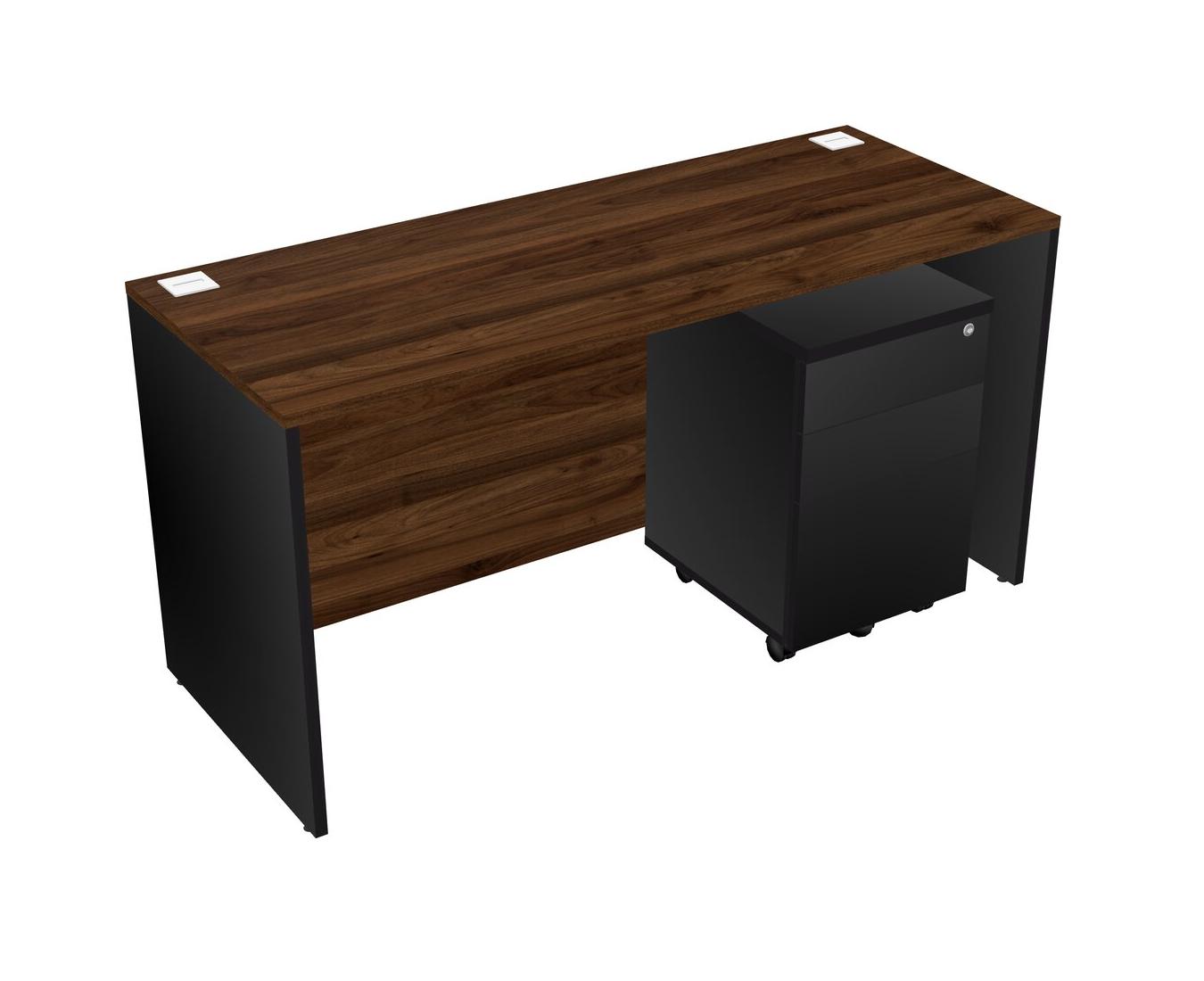 Columbia Walnut Rectangular Office Desk Plus Black Wooden Mobile Drawers