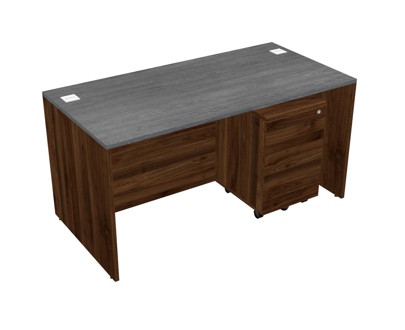 Grey Rectangular Office Desk Plus Columbia Walnut Wooden Mobile Drawers