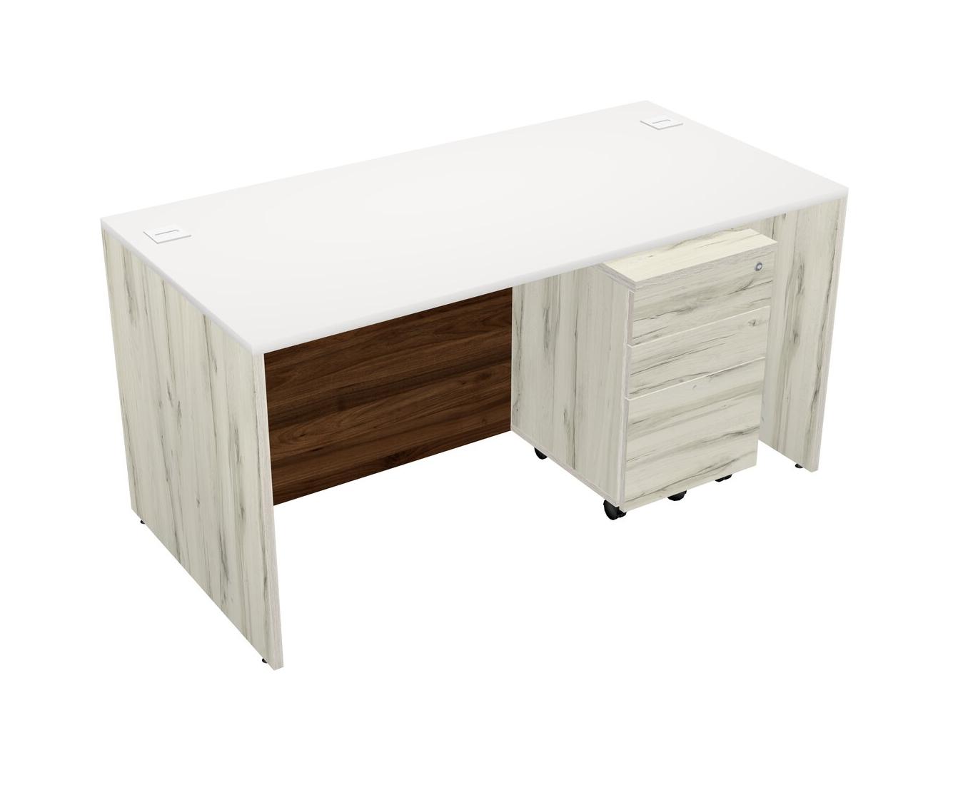 White Rectangular Office Desk Plus Heinne Holz Wooden Mobile Drawers