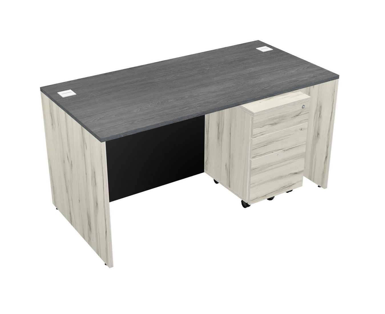 Grey Rectangular Office Desk Plus Heinne Holz Wooden Mobile Drawers