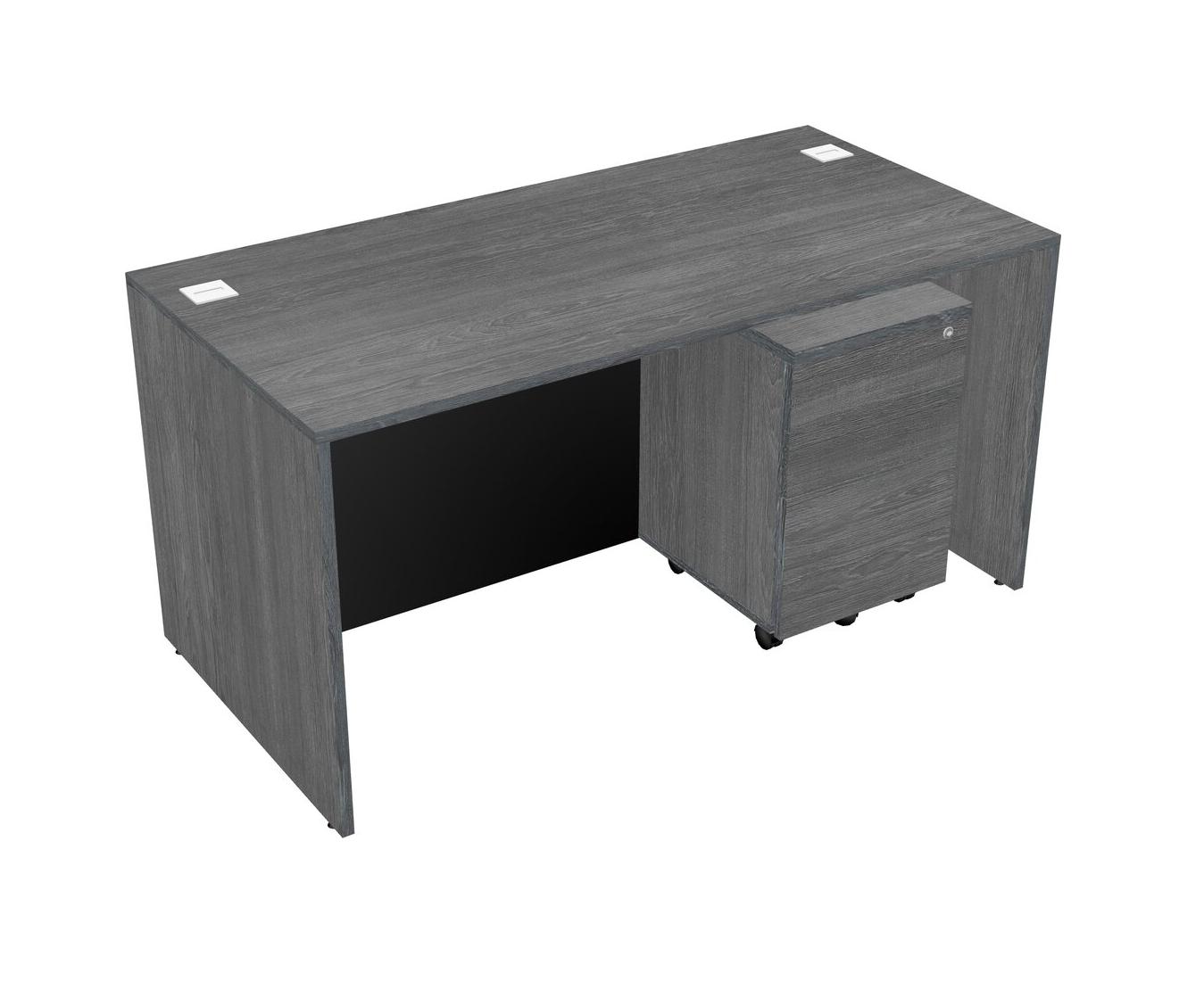 Grey Rectangular Office Desk Plus Grey Wooden Mobile Drawers