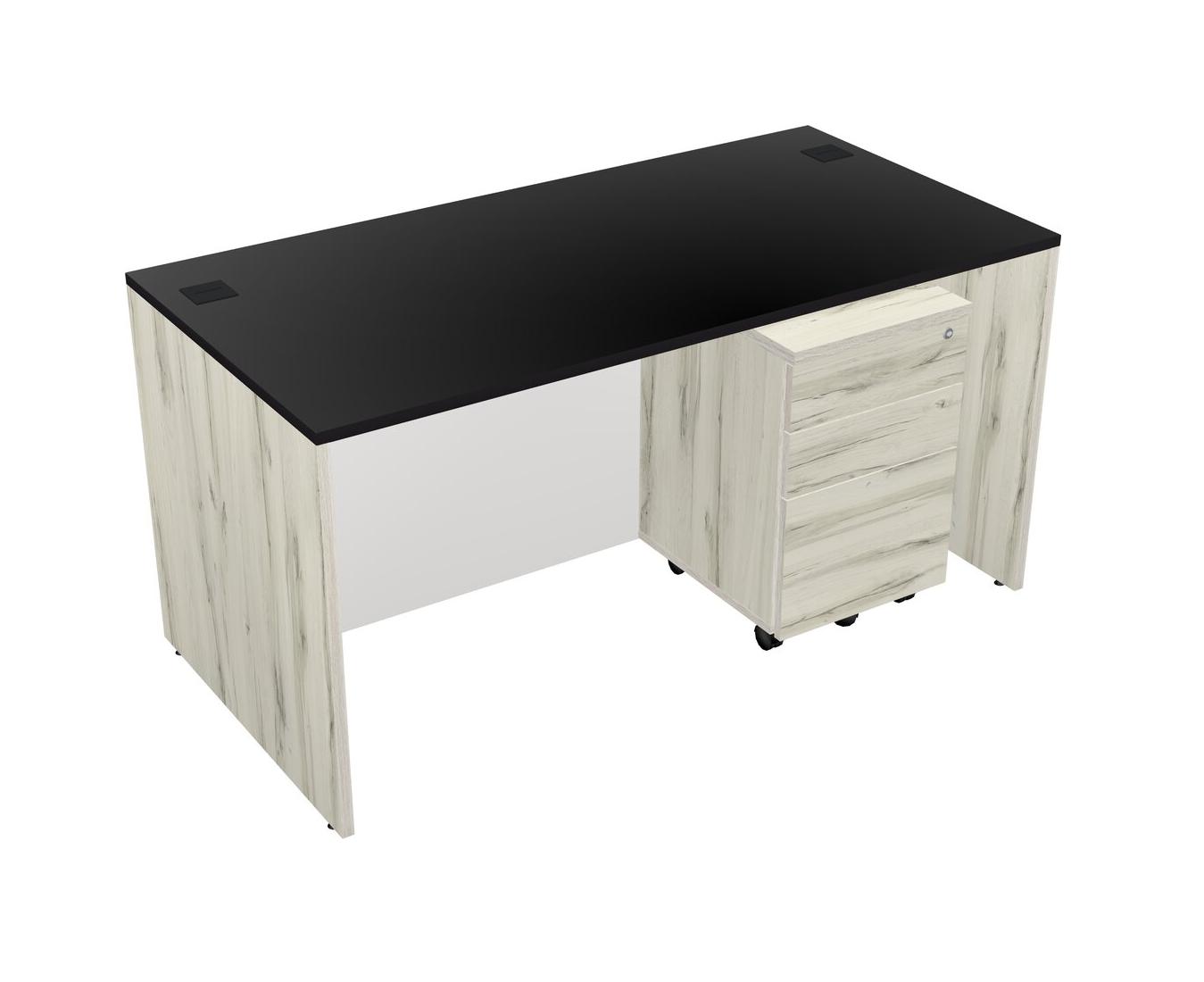 Black Rectangular Office Desk Plus Heinne Holz Wooden Mobile Drawers