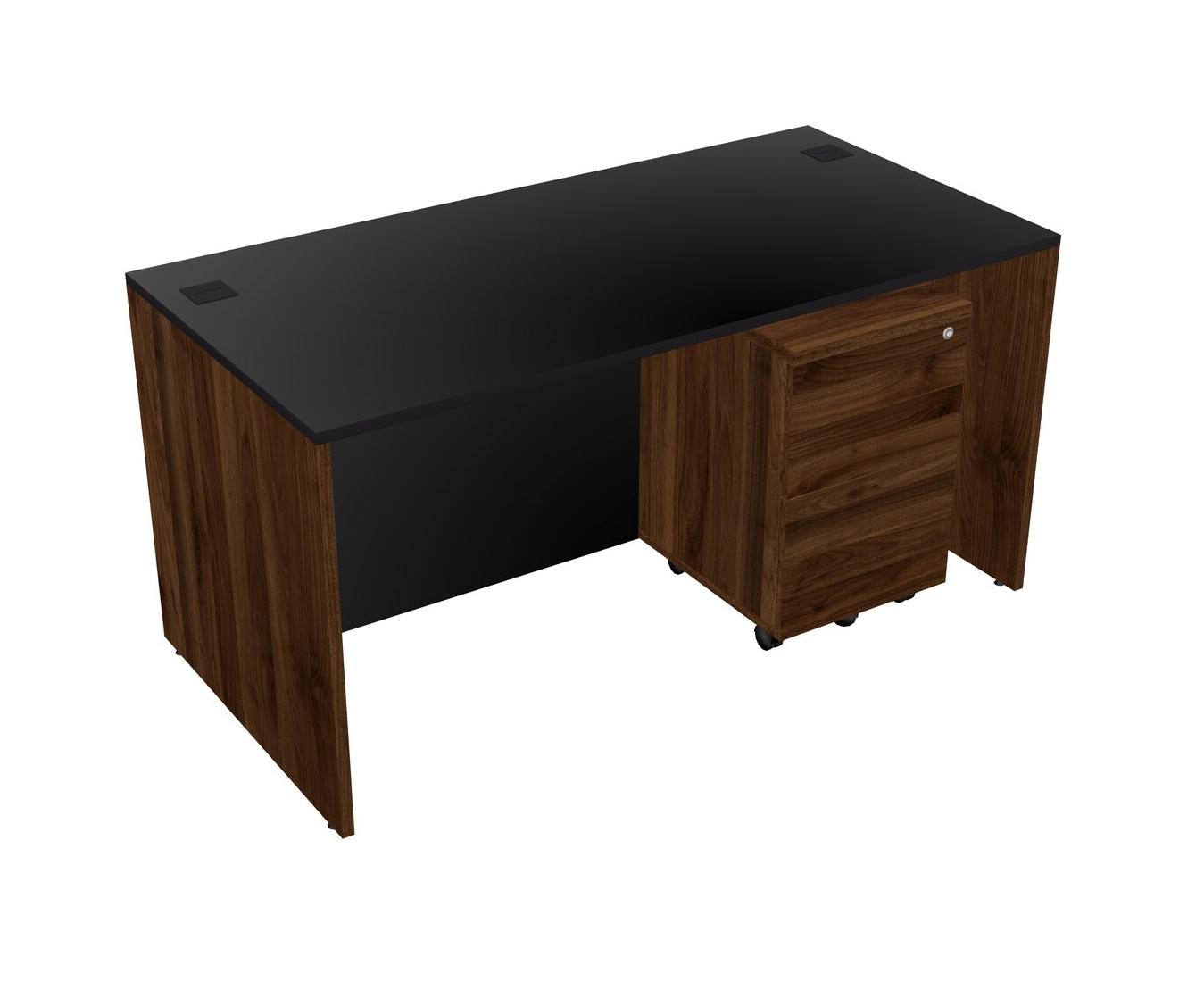 Black Rectangular Office Desk Plus Columbia Walnut Wooden Mobile Drawers