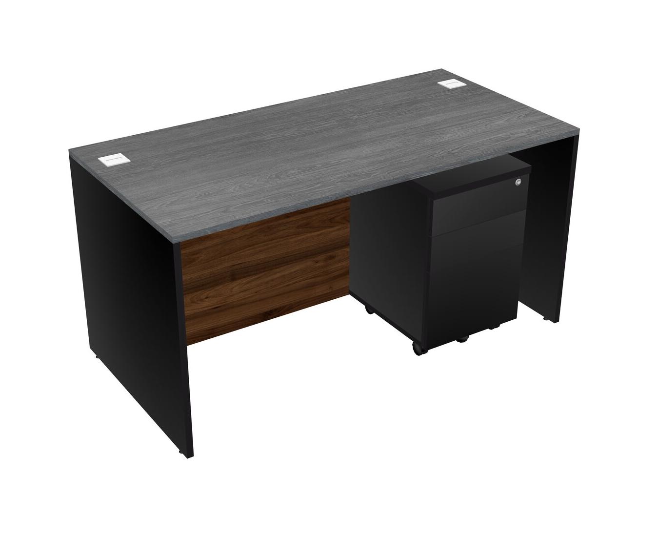 Grey Rectangular Office Desk Plus Black Wooden Mobile Drawers