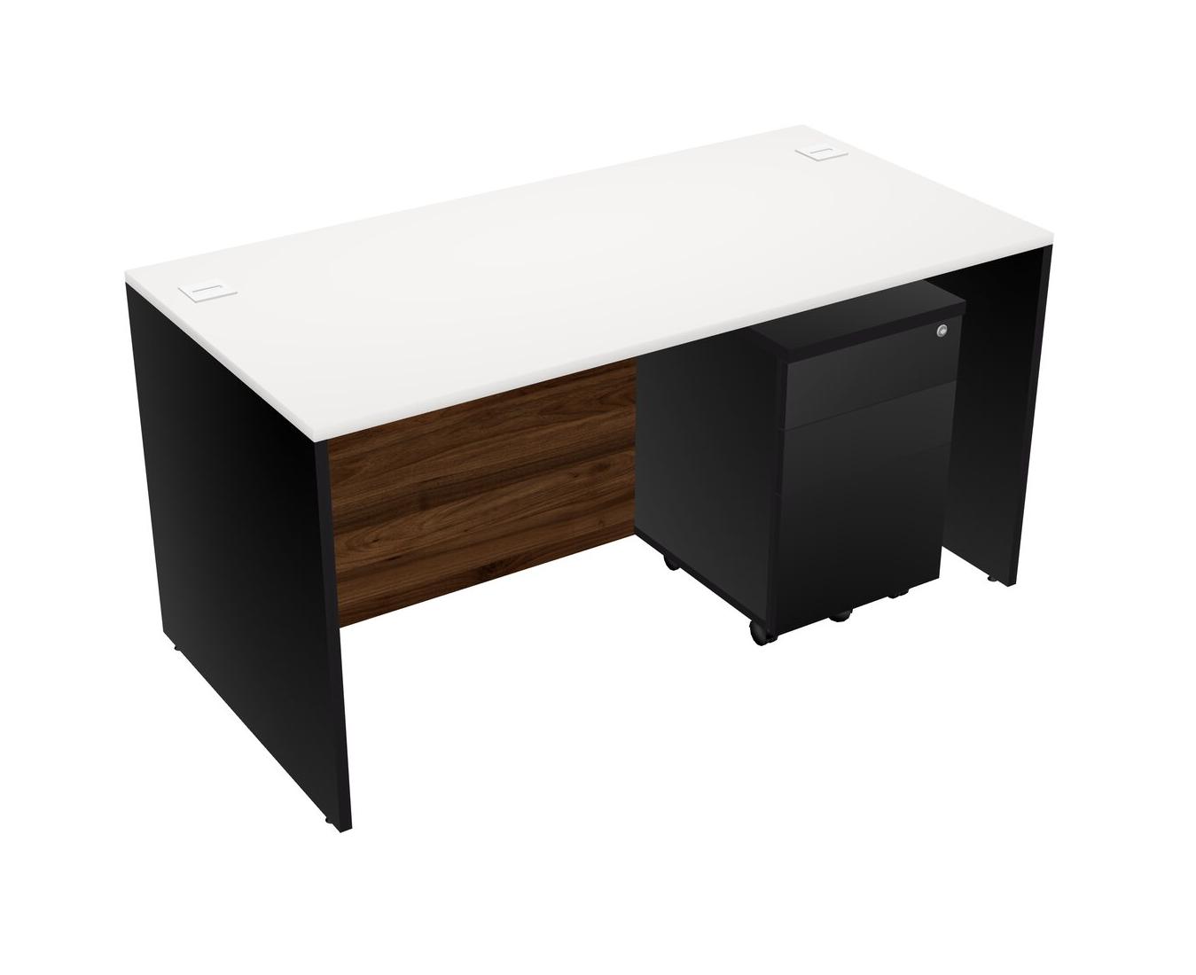 White Rectangular Office Desk Plus Black Wooden Mobile Drawers
