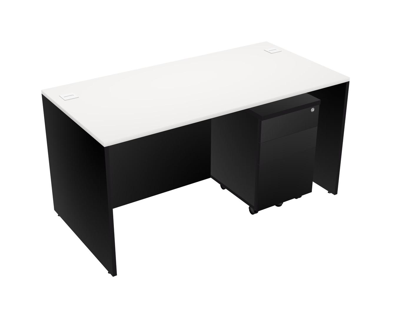 White Rectangular Office Desk Plus Black Wooden Mobile Drawers