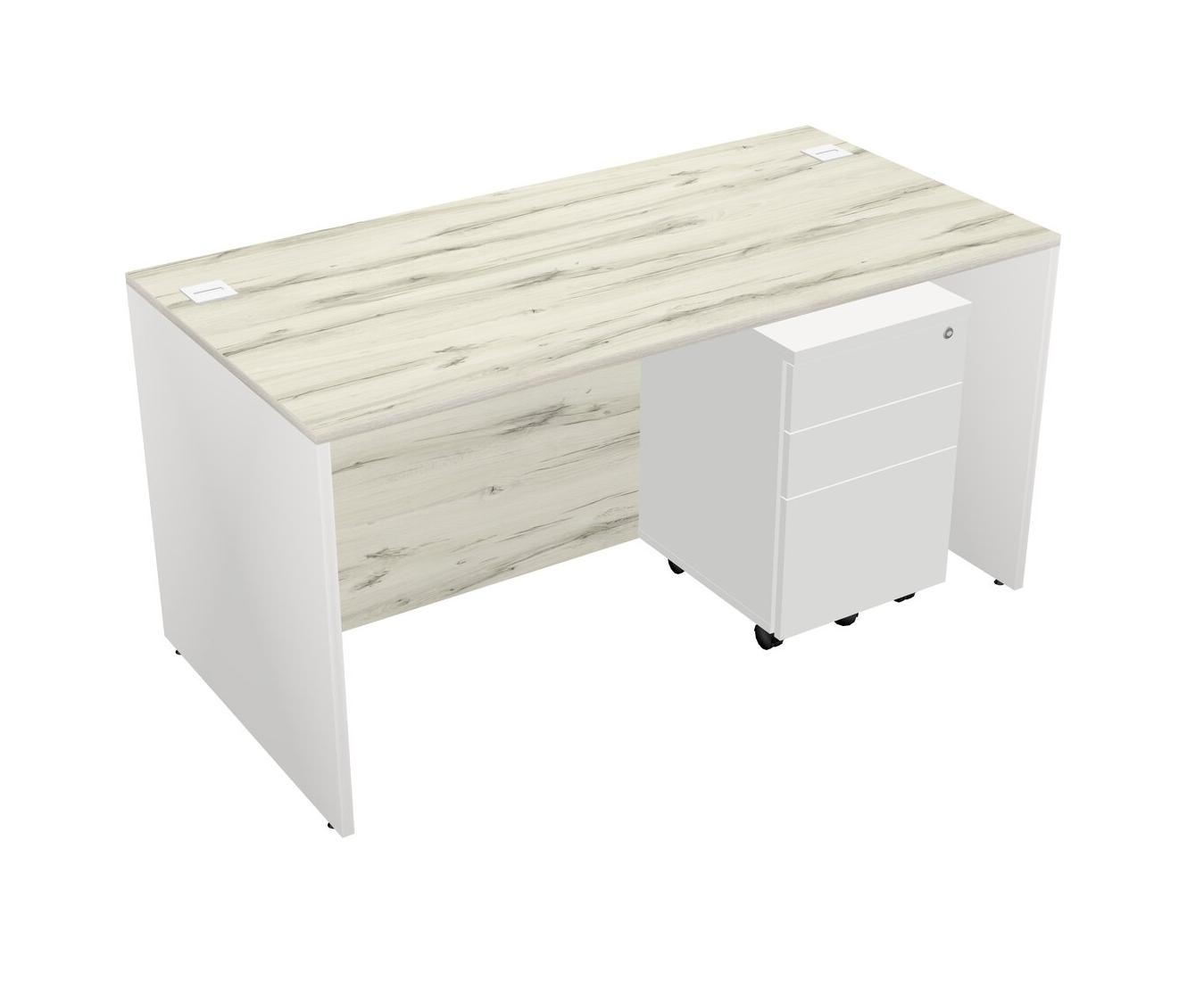 Heinne Holz Rectangular Office Desk Plus White Wooden Mobile Drawers
