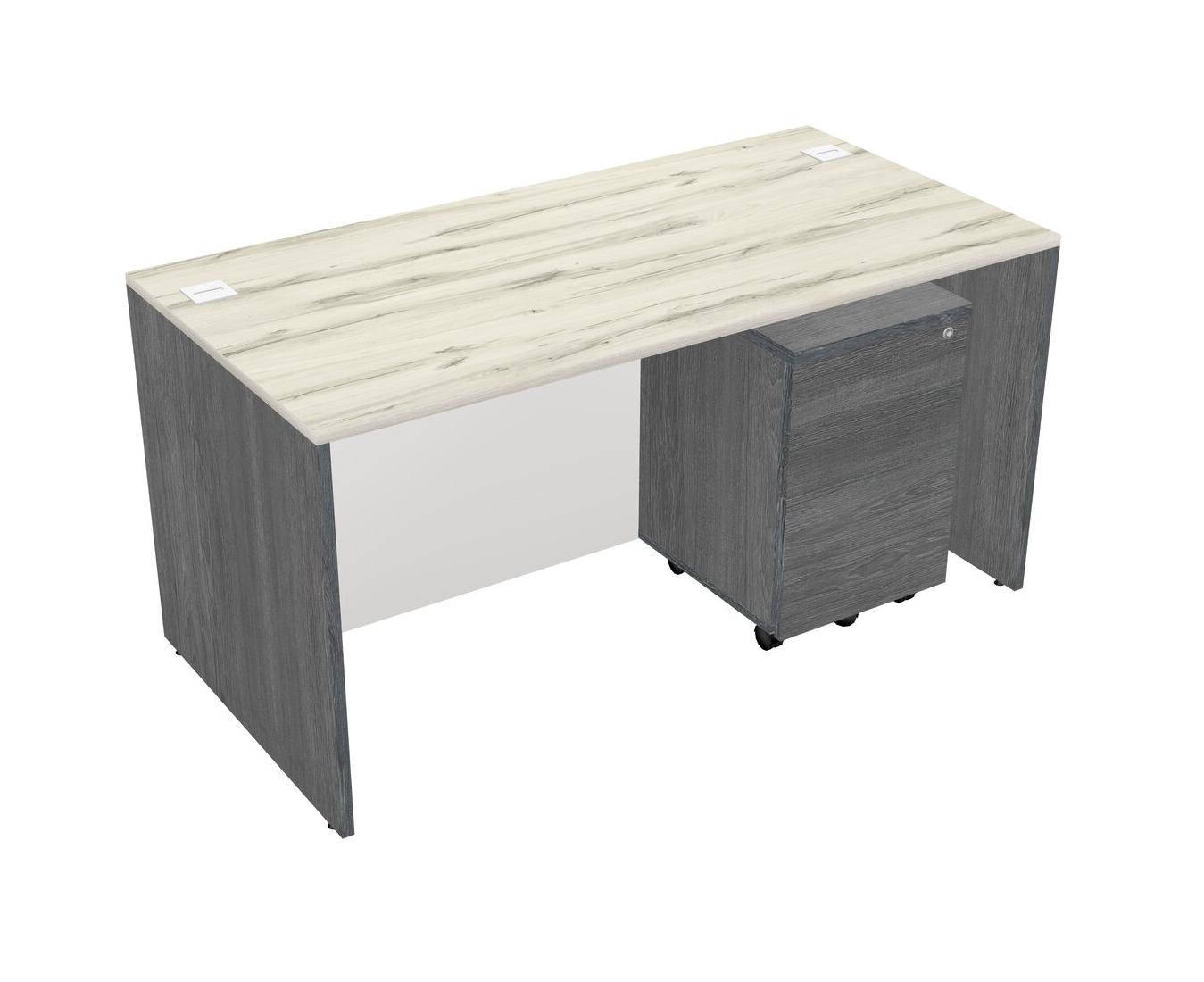 Heinne Holz Rectangular Office Desk Plus Grey Wooden Mobile Drawers