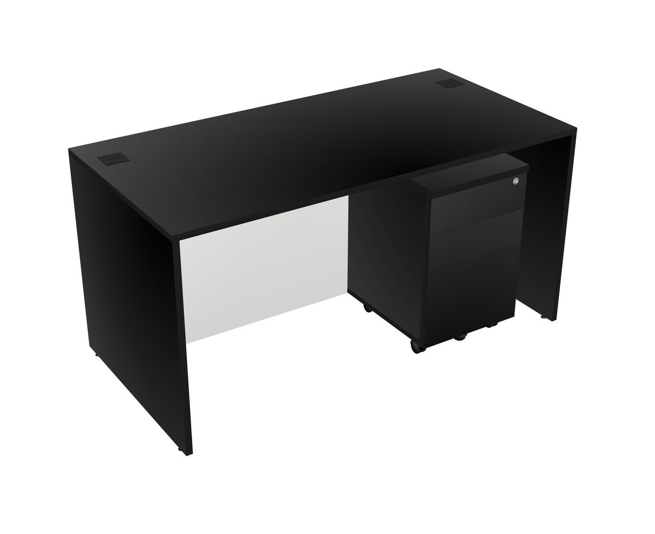Black Rectangular Office Desk Plus Black Wooden Mobile Drawers
