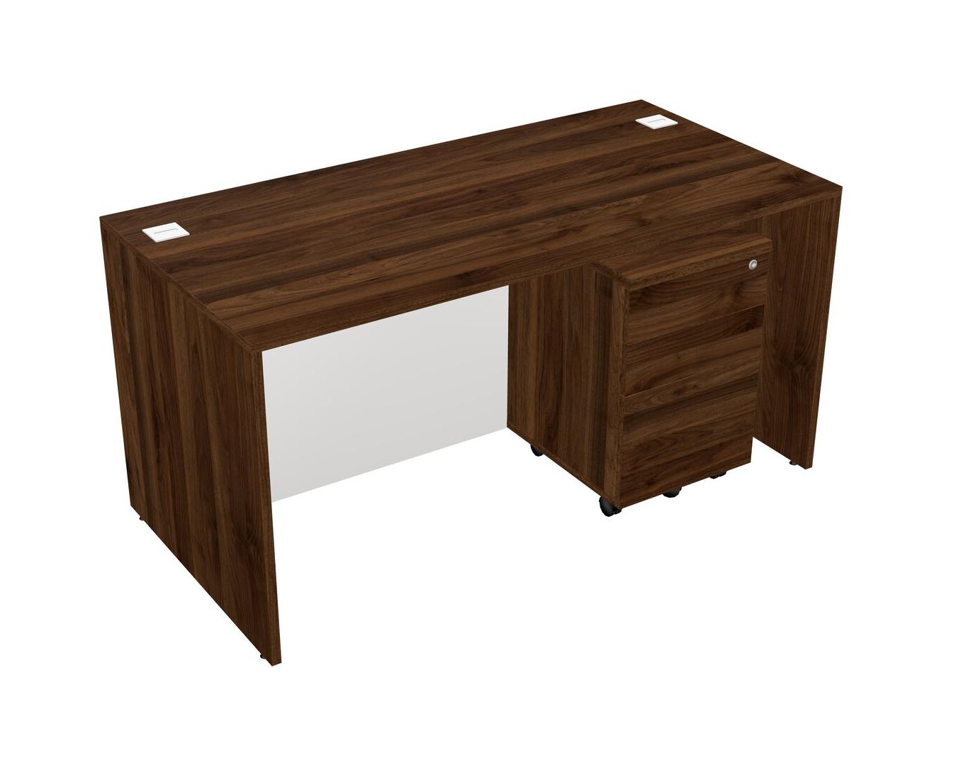 Columbia Walnut Rectangular Office Desk Plus Columbia Walnut Wooden Mobile Drawers