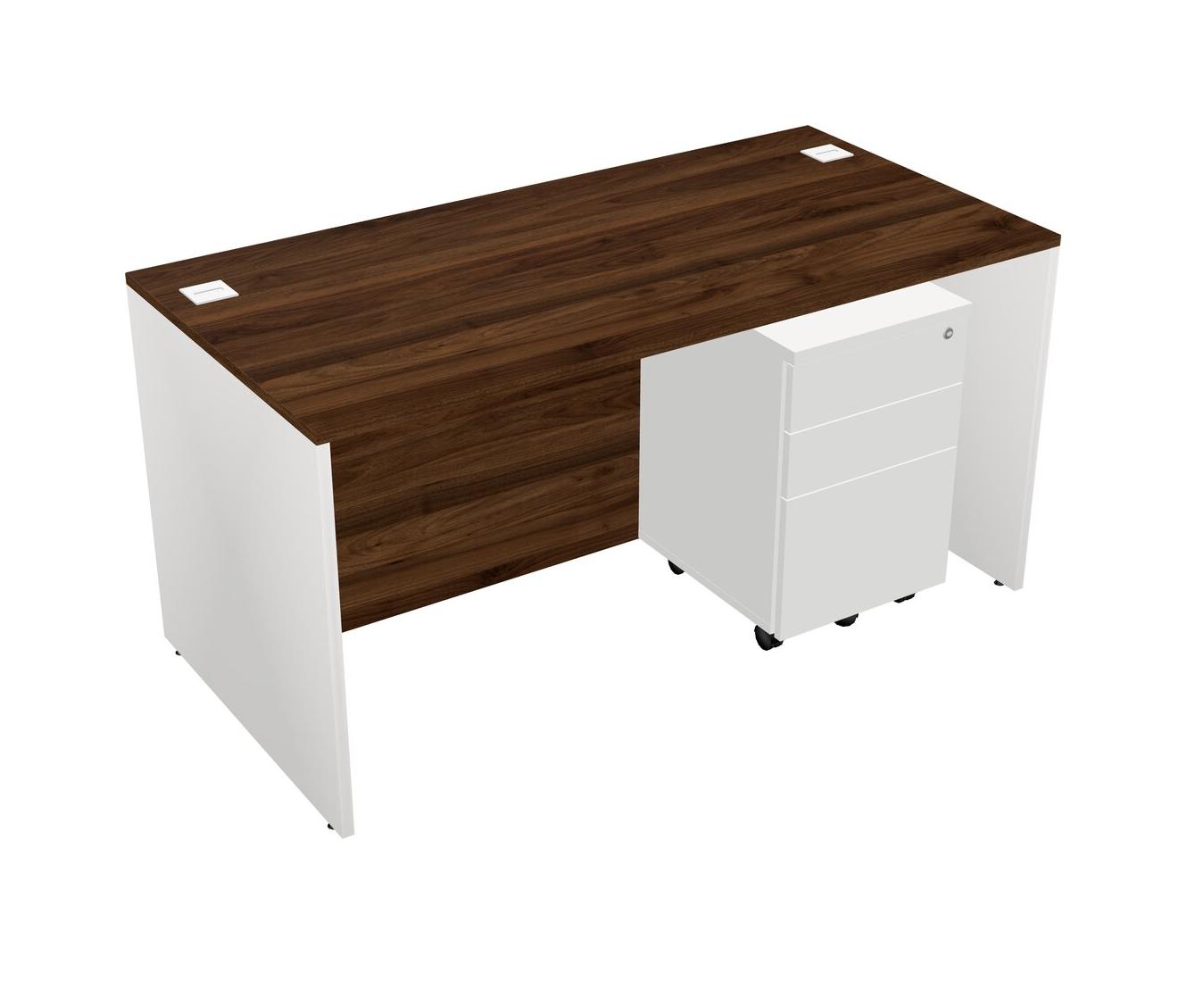 Columbia Walnut Rectangular Office Desk Plus White Wooden Mobile Drawers