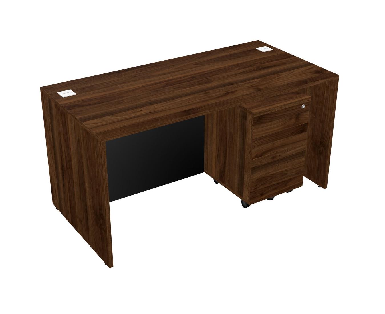 Columbia Walnut Rectangular Office Desk Plus Columbia Walnut Wooden Mobile Drawers