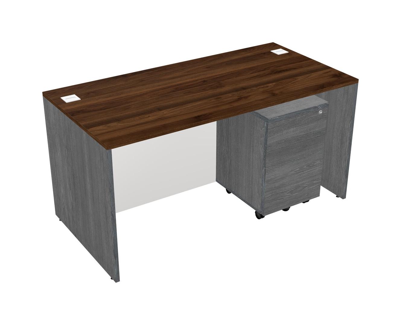 Columbia Walnut Rectangular Office Desk Plus Grey Wooden Mobile Drawers
