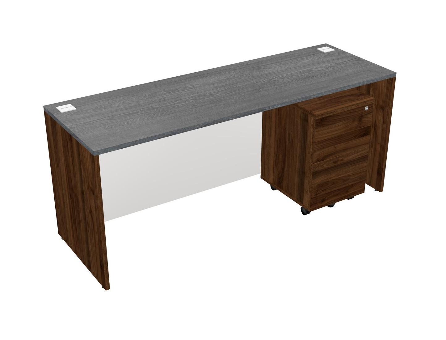 Grey Rectangular Office Desk Plus Columbia Walnut Wooden Mobile Drawers