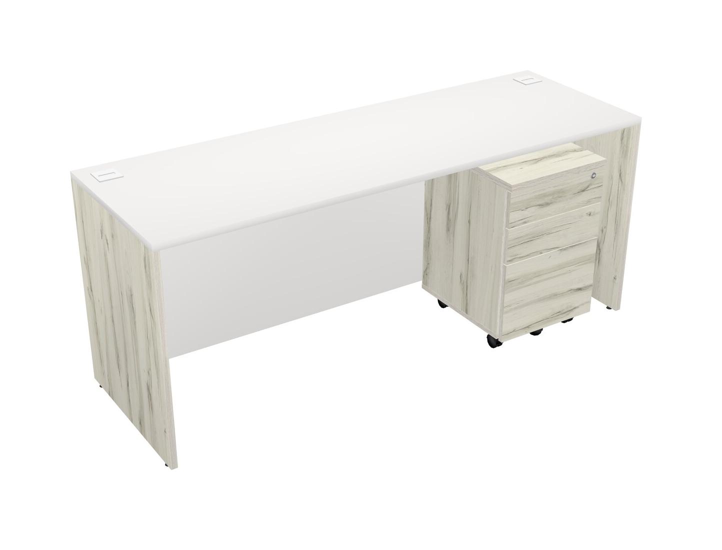 White Rectangular Office Desk Plus Heinne Holz Wooden Mobile Drawers