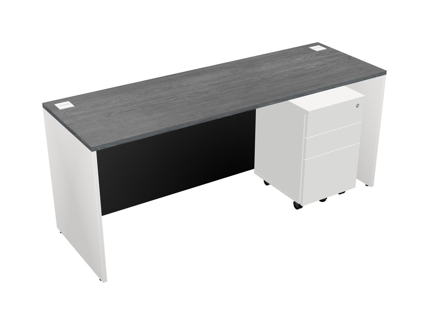 Grey Rectangular Office Desk Plus White Wooden Mobile Drawers