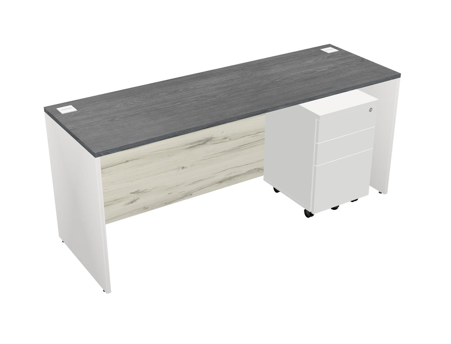 Grey Rectangular Office Desk Plus White Wooden Mobile Drawers