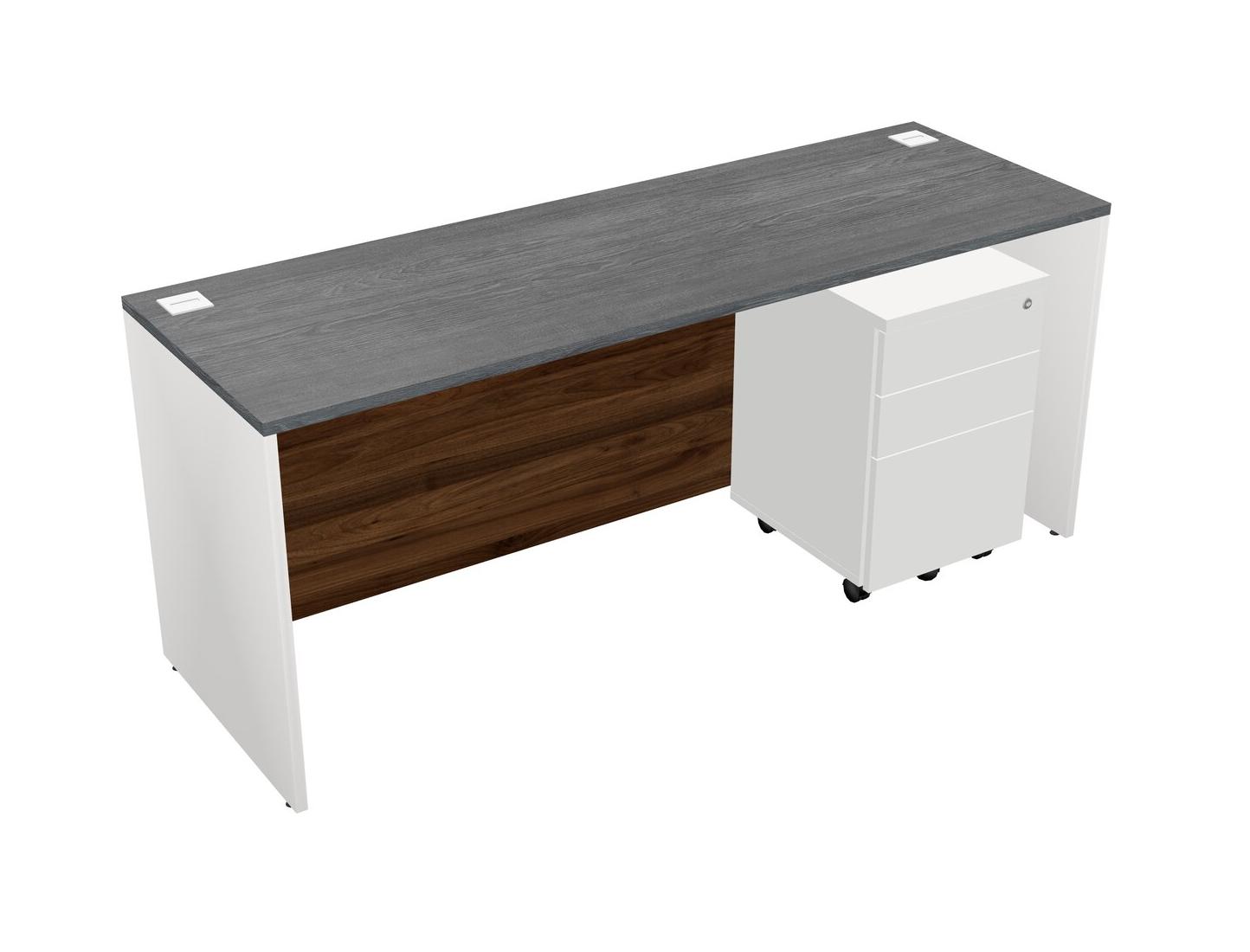 Grey Rectangular Office Desk Plus White Wooden Mobile Drawers