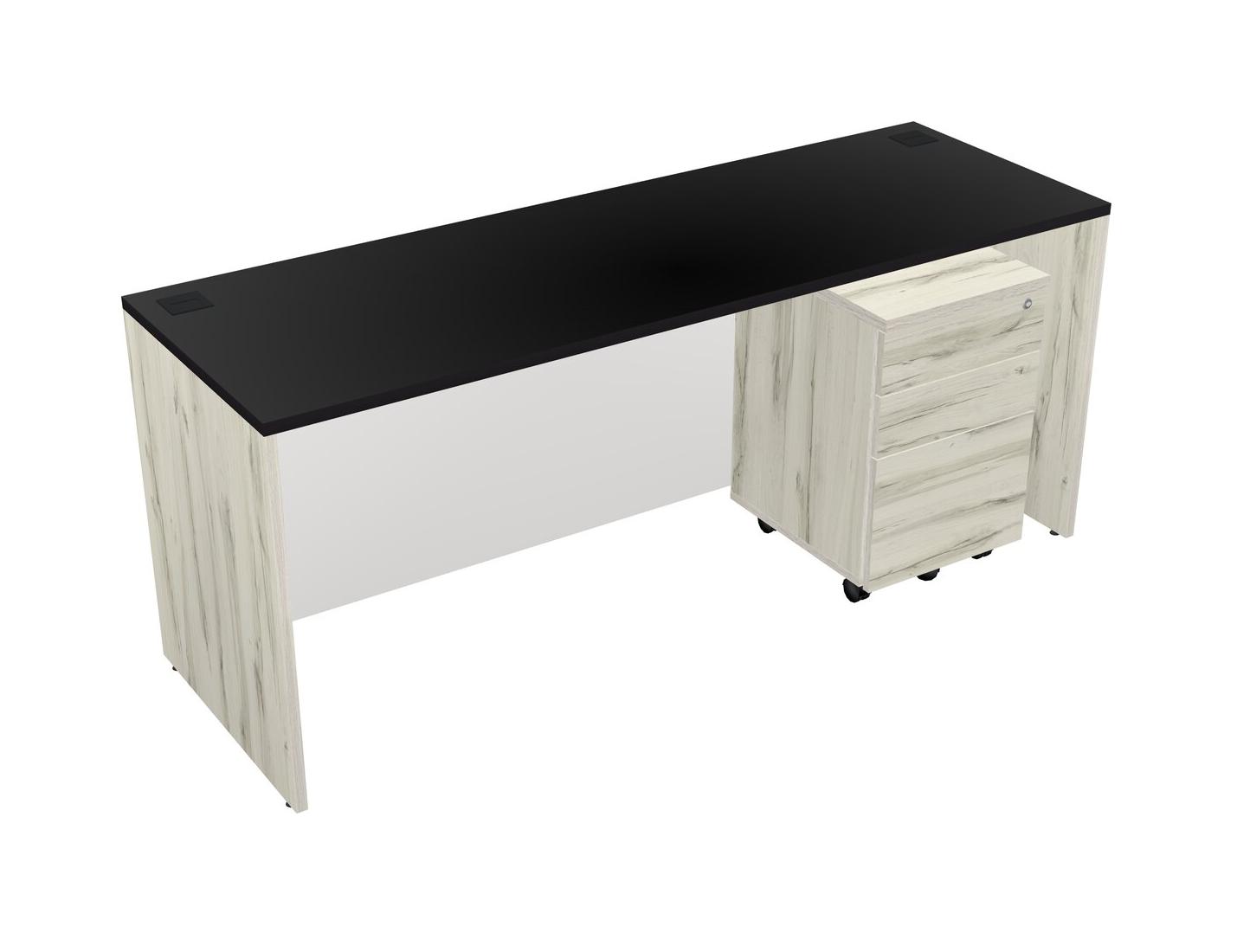 Black Rectangular Office Desk Plus Heinne Holz Wooden Mobile Drawers