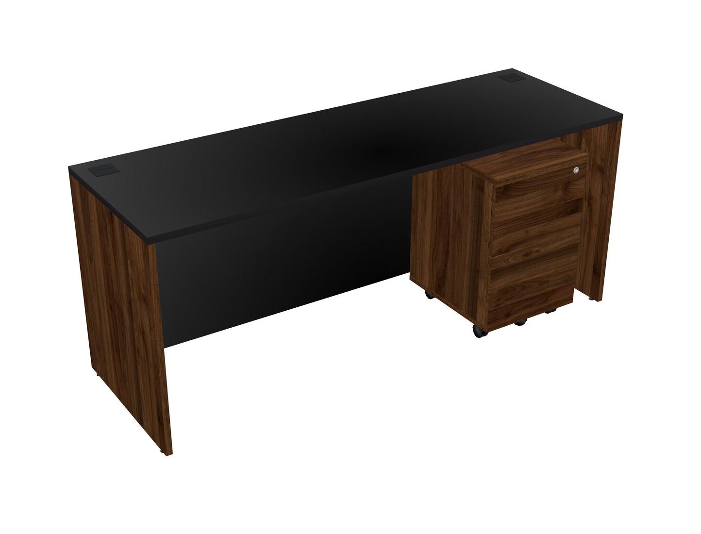 Black Rectangular Office Desk Plus Columbia Walnut Wooden Mobile Drawers