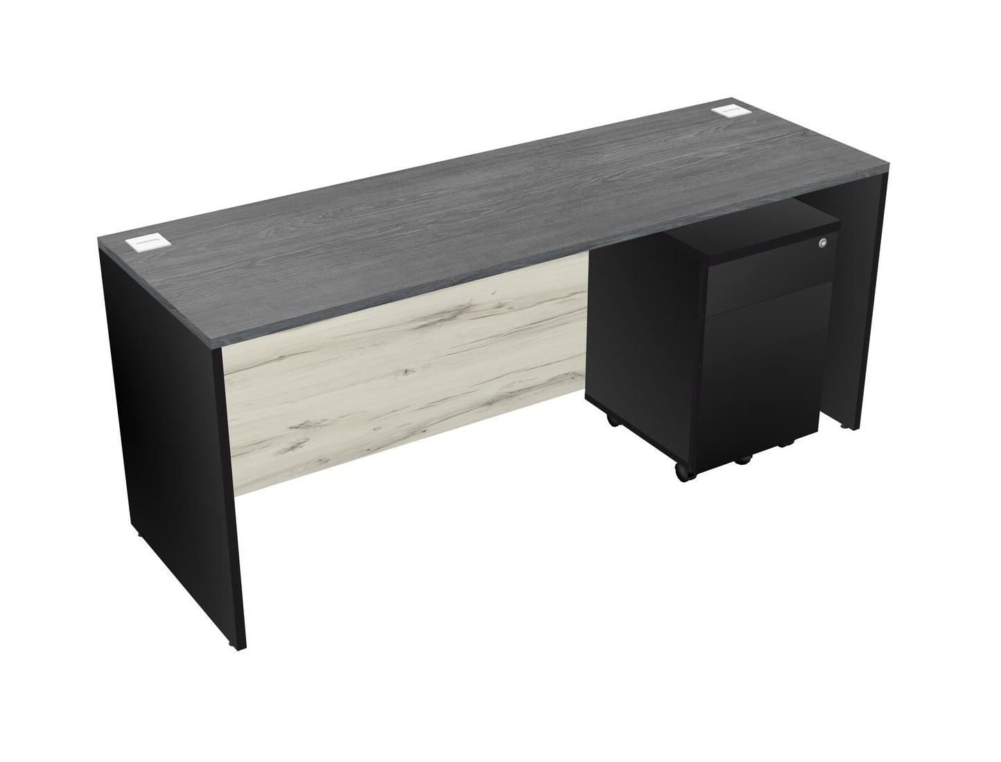 Grey Rectangular Office Desk Plus Black Wooden Mobile Drawers