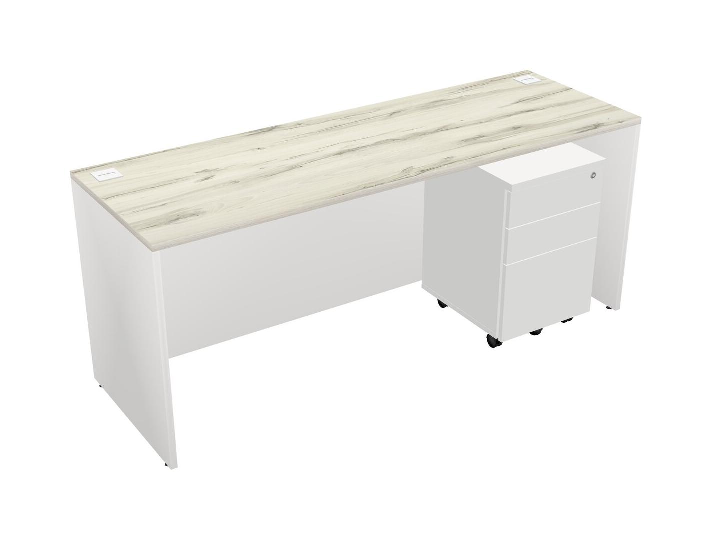 Heinne Holz Rectangular Office Desk Plus White Wooden Mobile Drawers