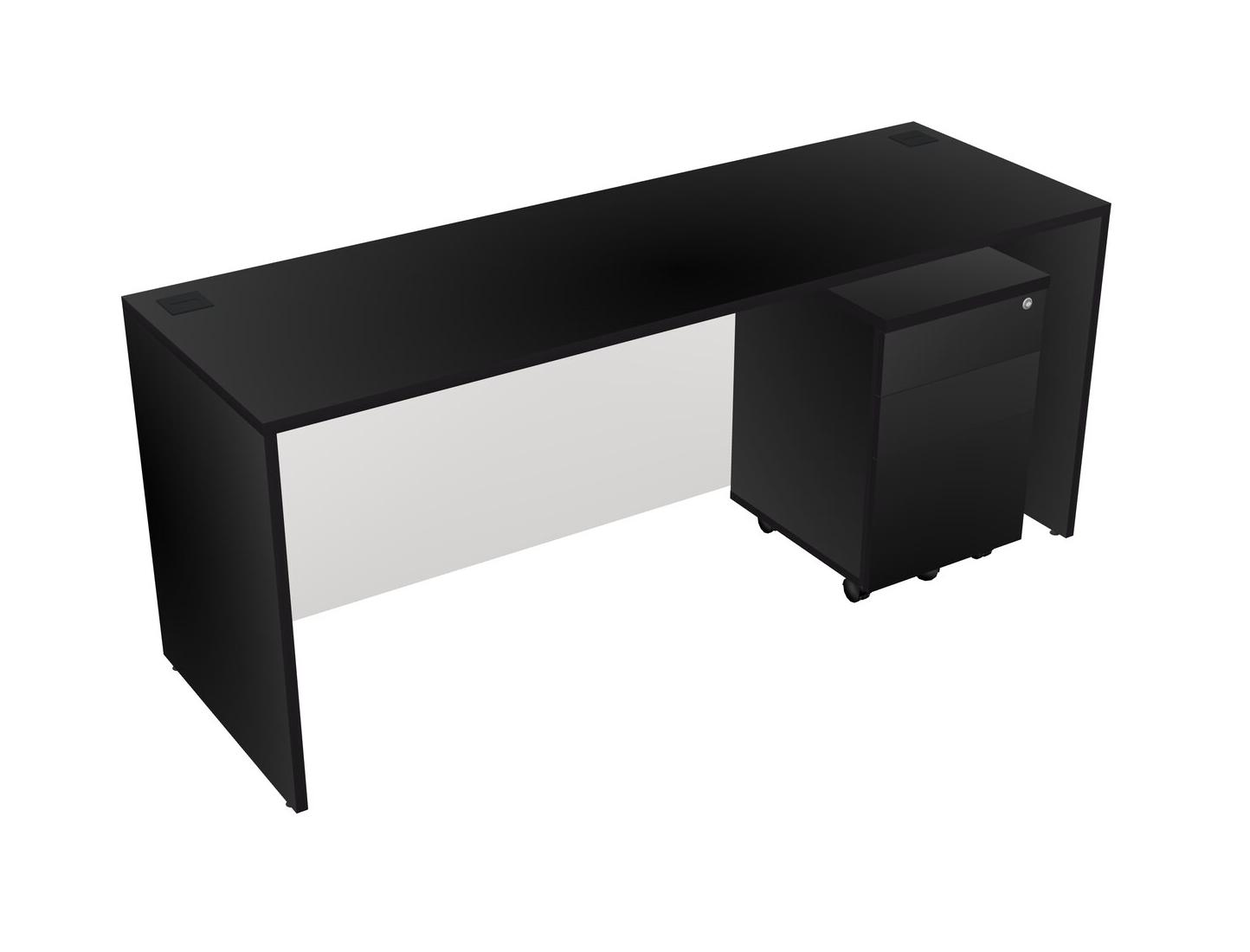 Black Rectangular Office Desk Plus Black Wooden Mobile Drawers
