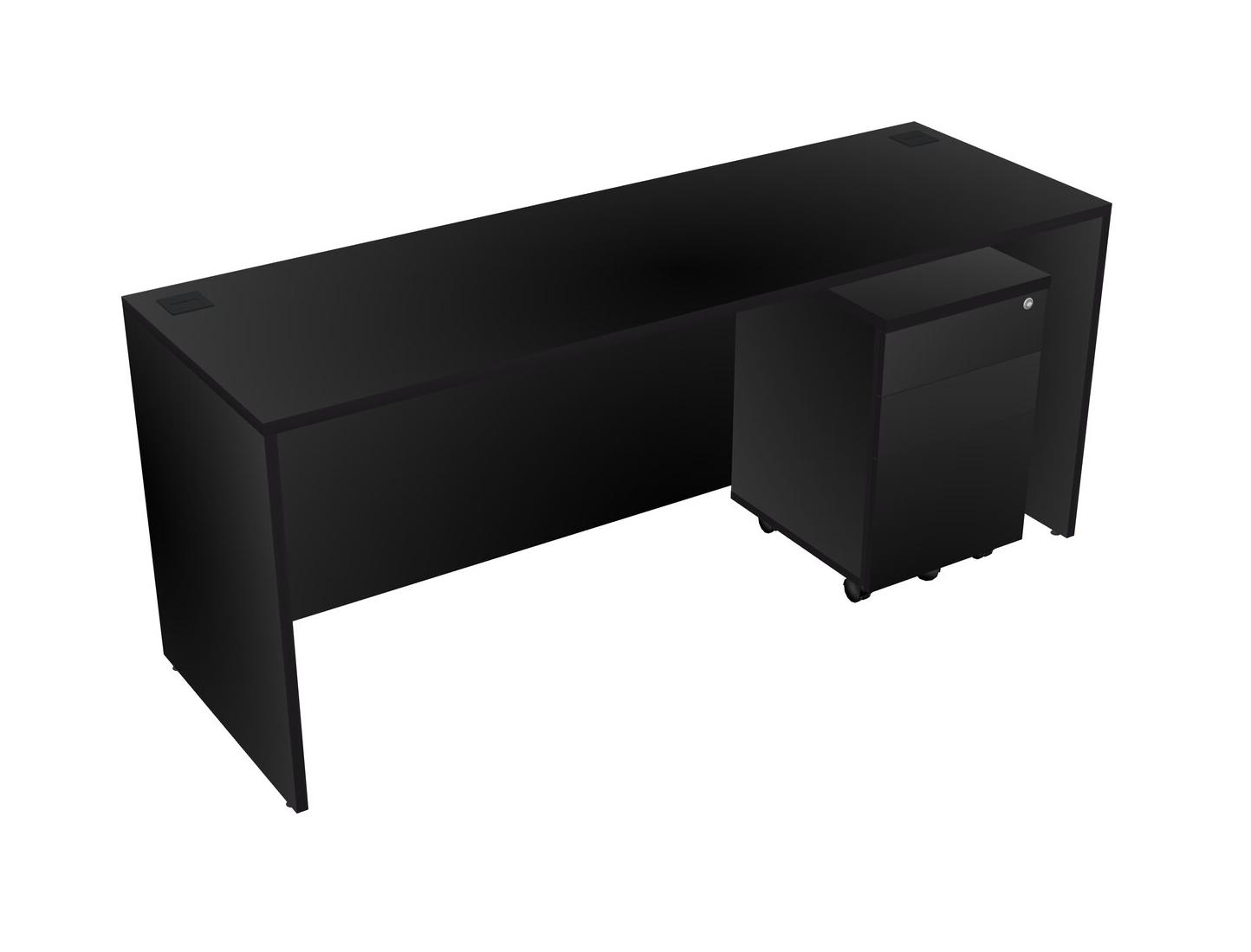 Black Rectangular Office Desk Plus Black Wooden Mobile Drawers