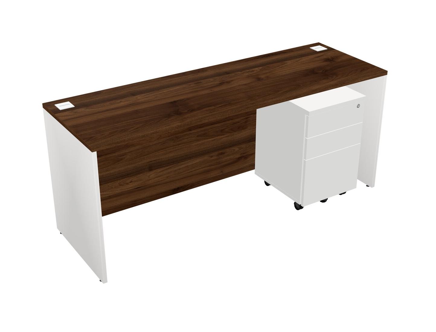 Columbia Walnut Rectangular Office Desk Plus White Wooden Mobile Drawers
