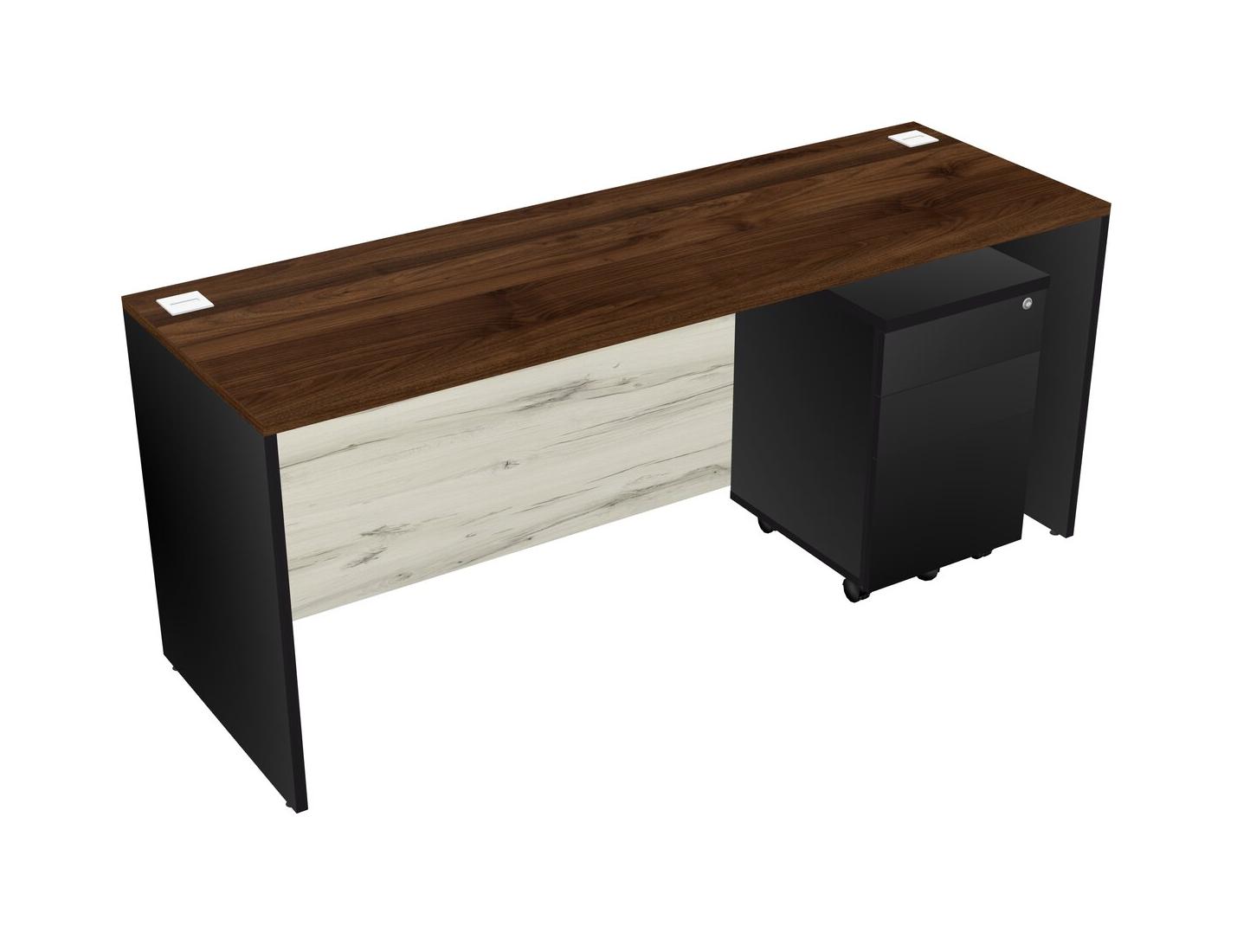 Columbia Walnut Rectangular Office Desk Plus Black Wooden Mobile Drawers