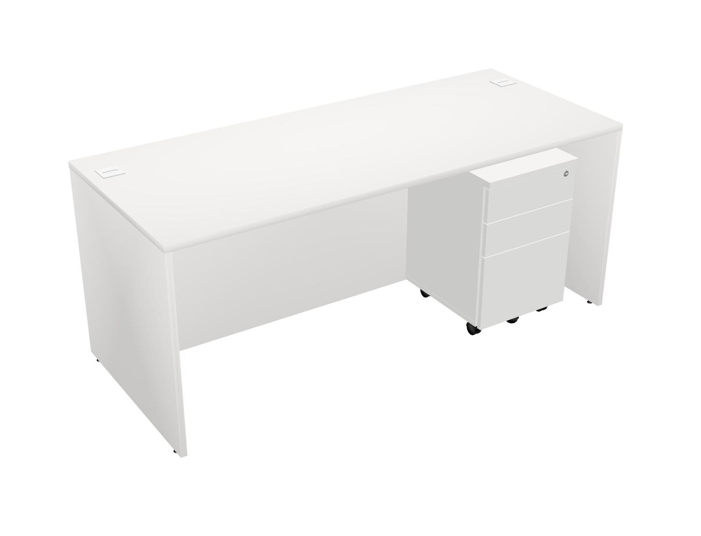 White Rectangular Office Desk Plus White Wooden Mobile Drawers