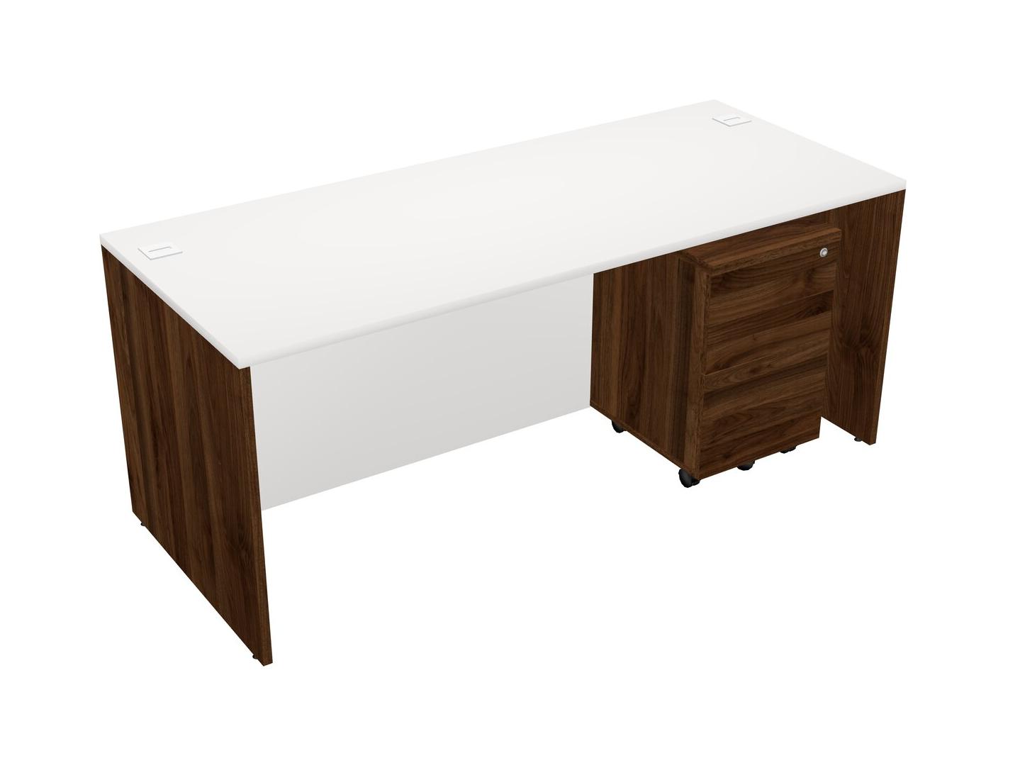 White Rectangular Office Desk Plus Columbia Walnut Wooden Mobile Drawers