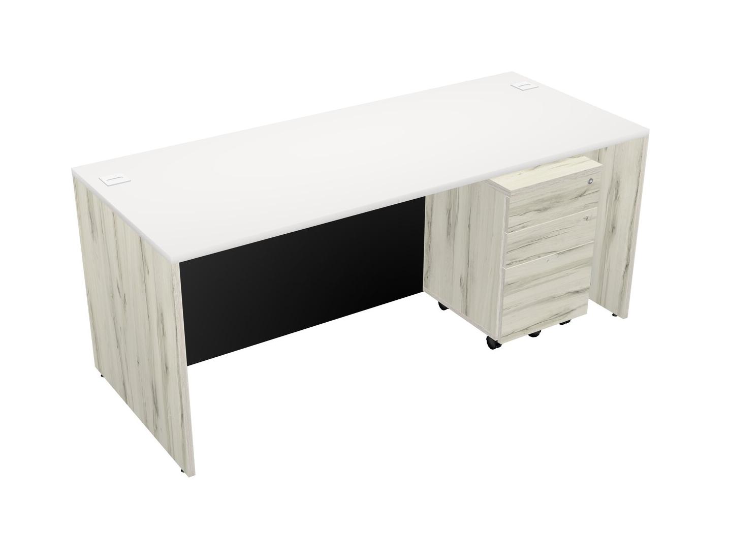 White Rectangular Office Desk Plus Heinne Holz Wooden Mobile Drawers